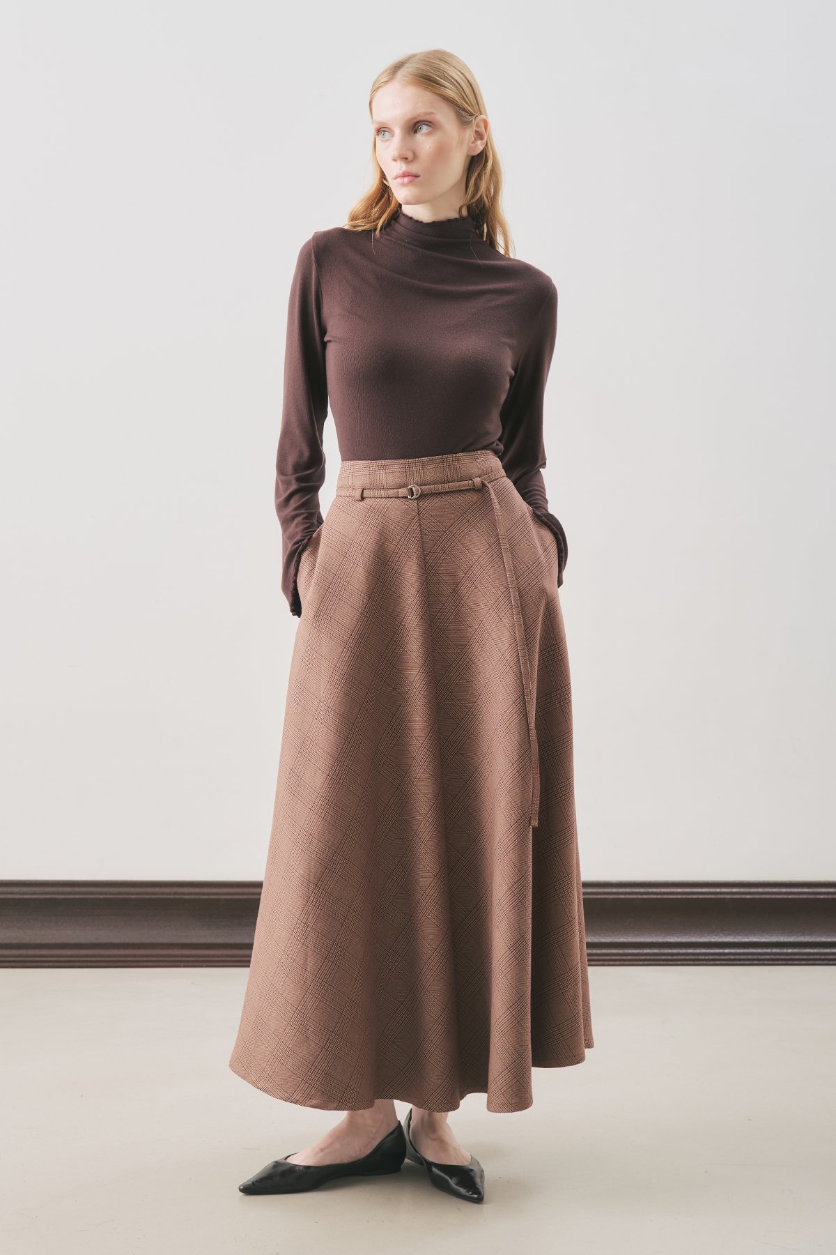 CHECKED PATTERN WIDE SKIRT BURGUNDY FEATURES