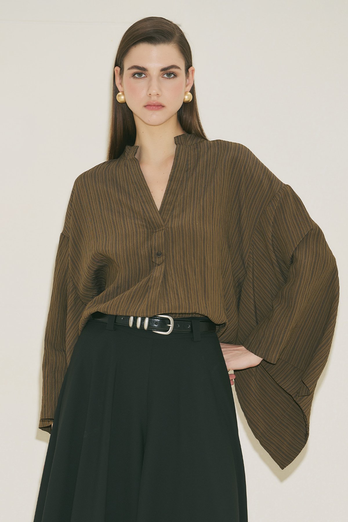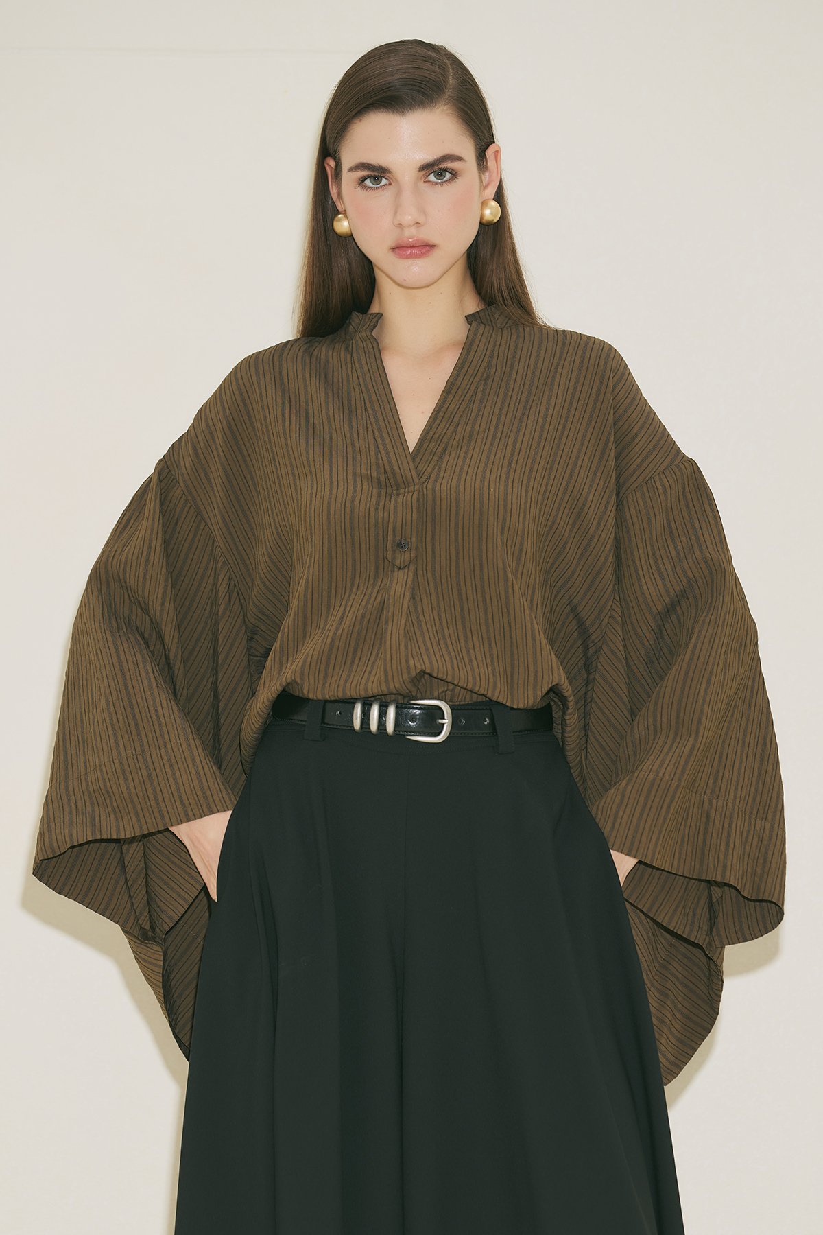 Regular form, V yaka, uzun bilek boy kol, crop boy, geniş kol detaylı kimono form, düğme kapamalı.