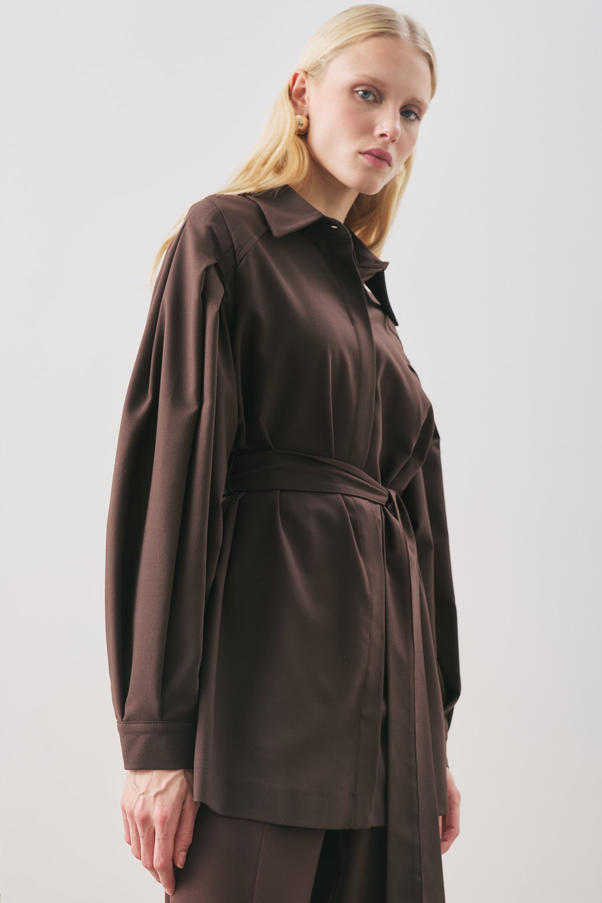GENİŞ KOL KEMERLİ GÖMLEK ACI KAHVE