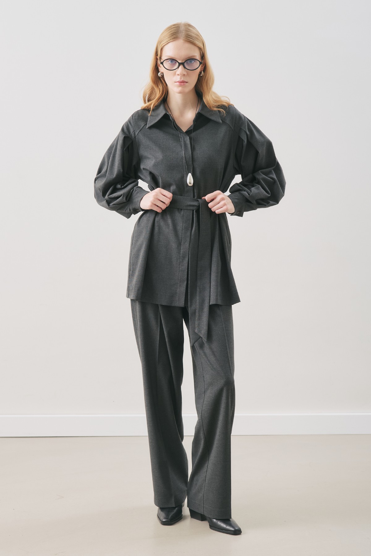 GENİŞ KOL KEMERLİ GÖMLEK ANTRASİT