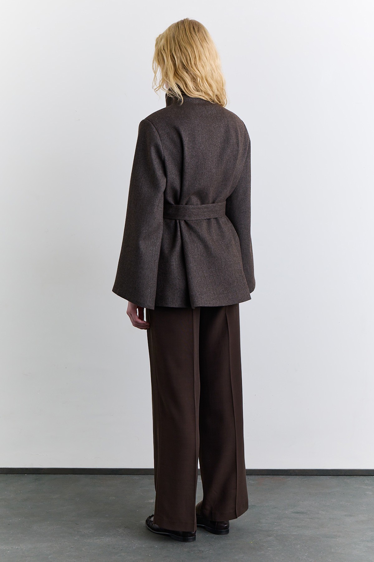 GENİŞ KOL KUŞAKLI CEKET VİZON