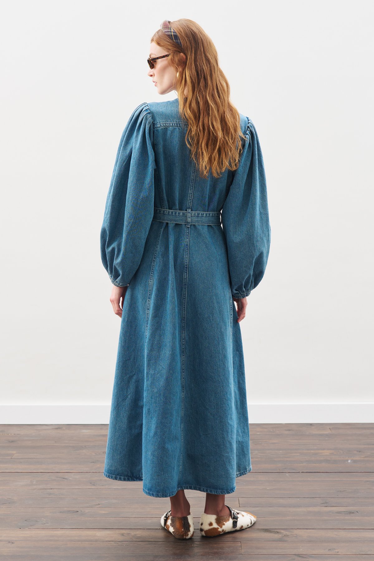 GENİŞ KOLLU DENİM ELBİSE MAVİ
