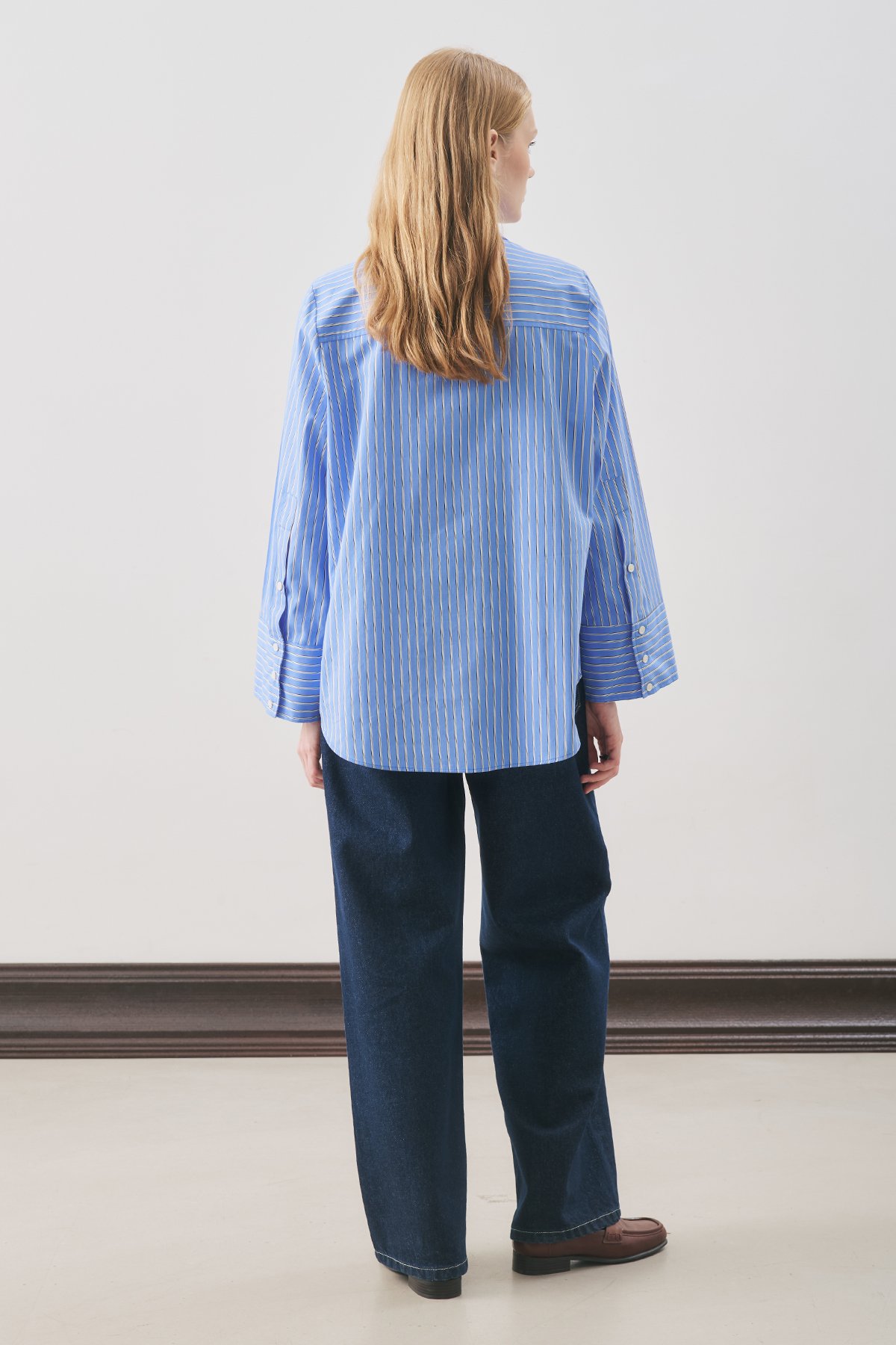 OVERSIZE ÇİZGİLİ GÖMLEK MAVİ ÇİZGİ