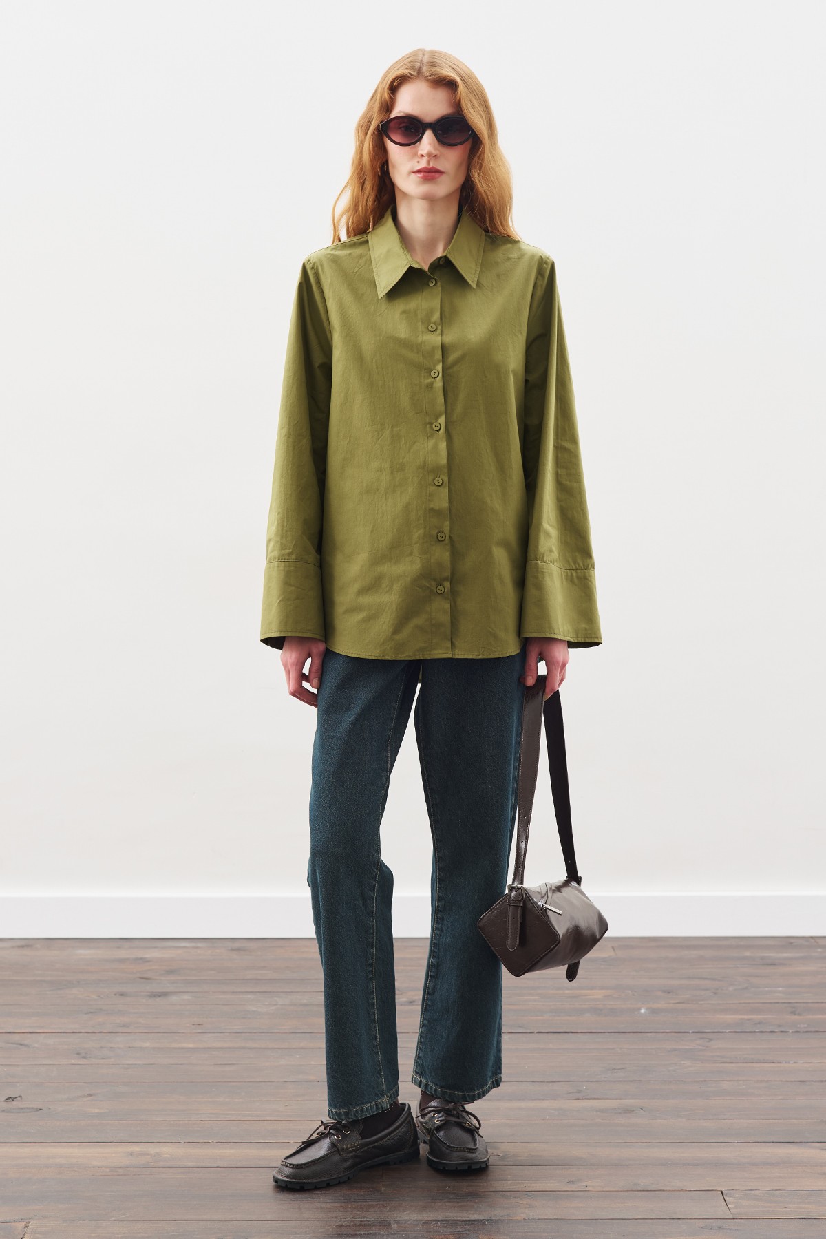 GENİŞ MANŞETLİ KLASİK GÖMLEK YAĞ YEŞİLİ