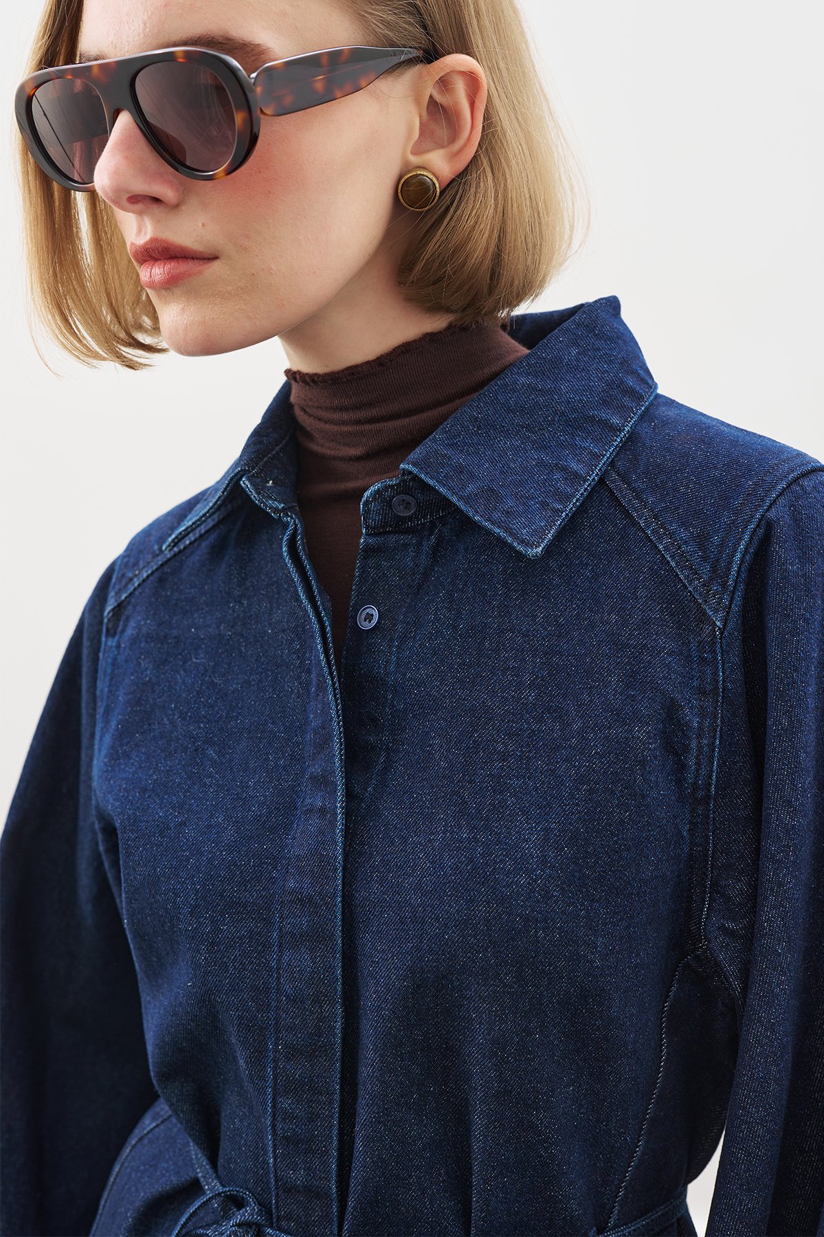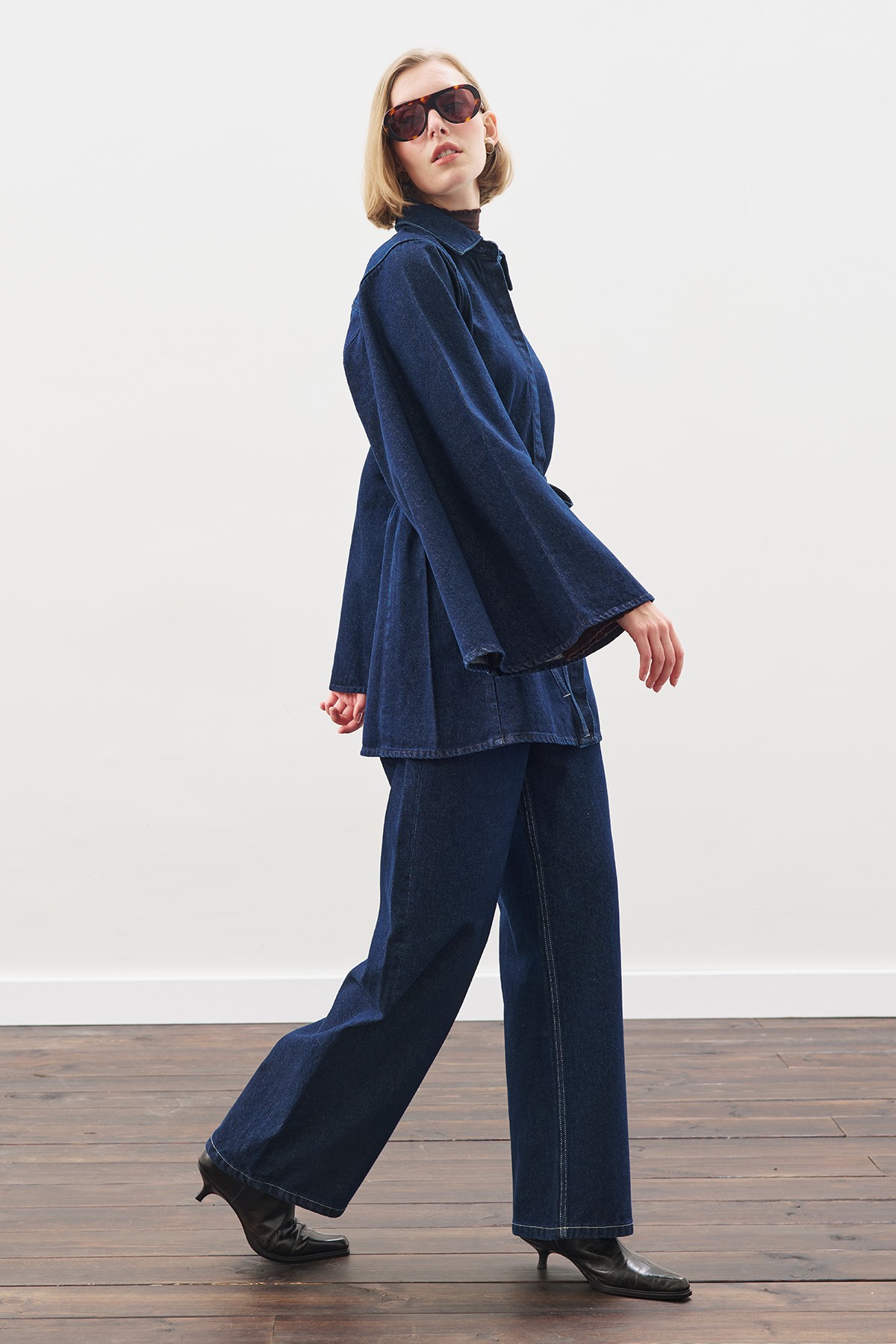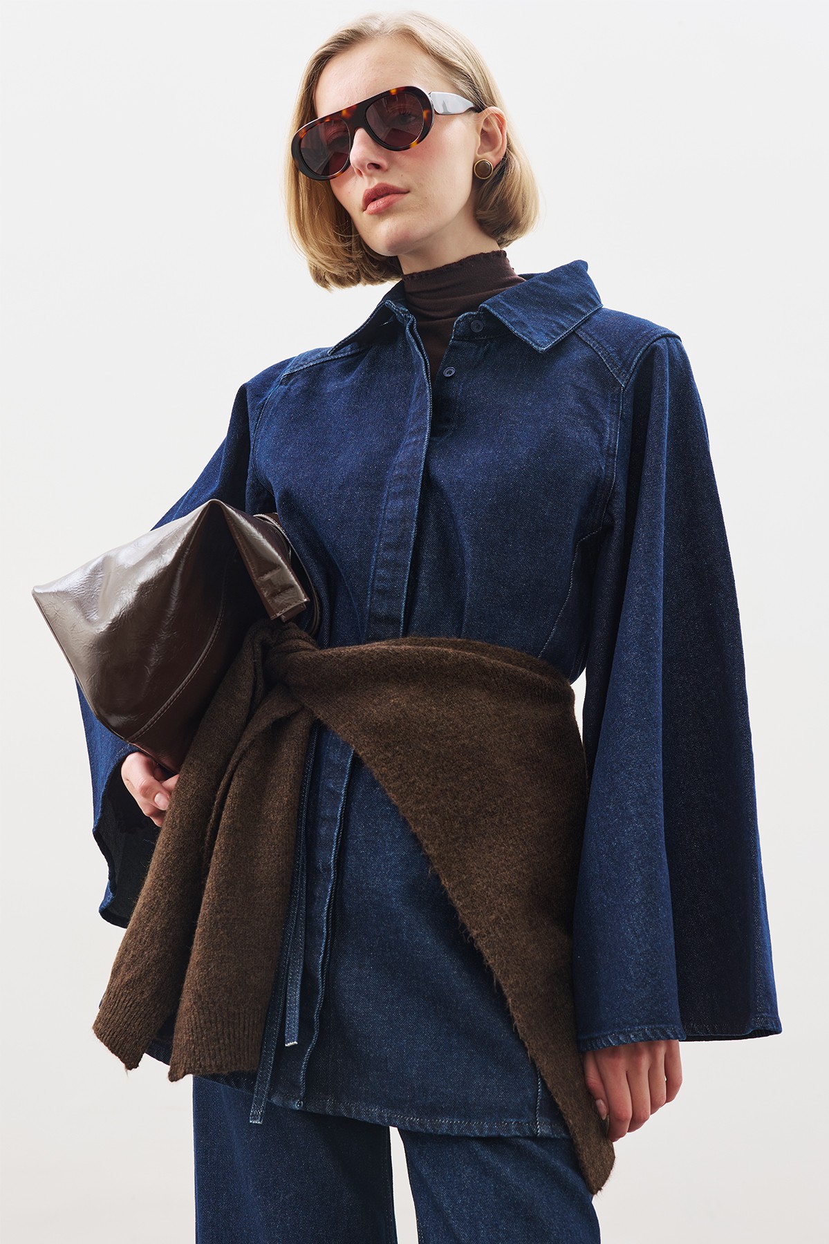 GENİŞ PELERİN KOLLU DENİM GÖMLEK İNDİGO