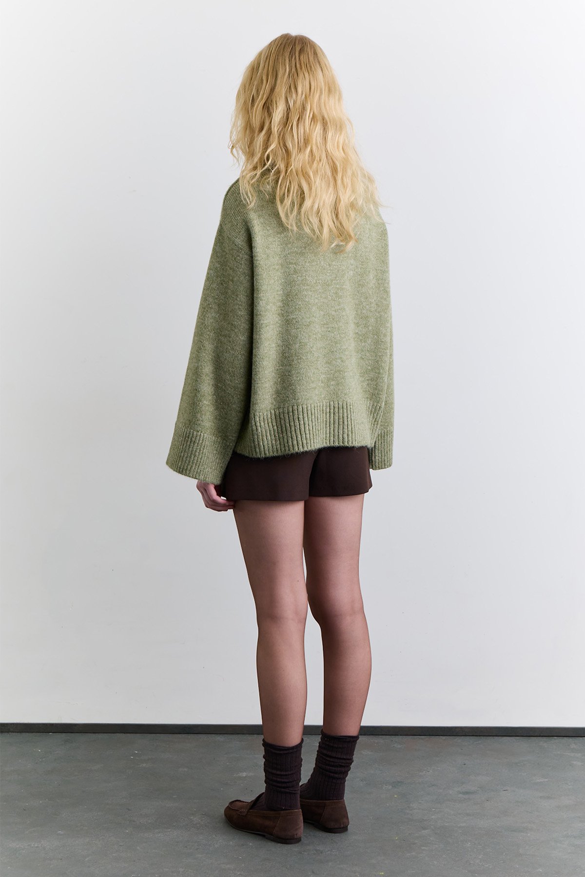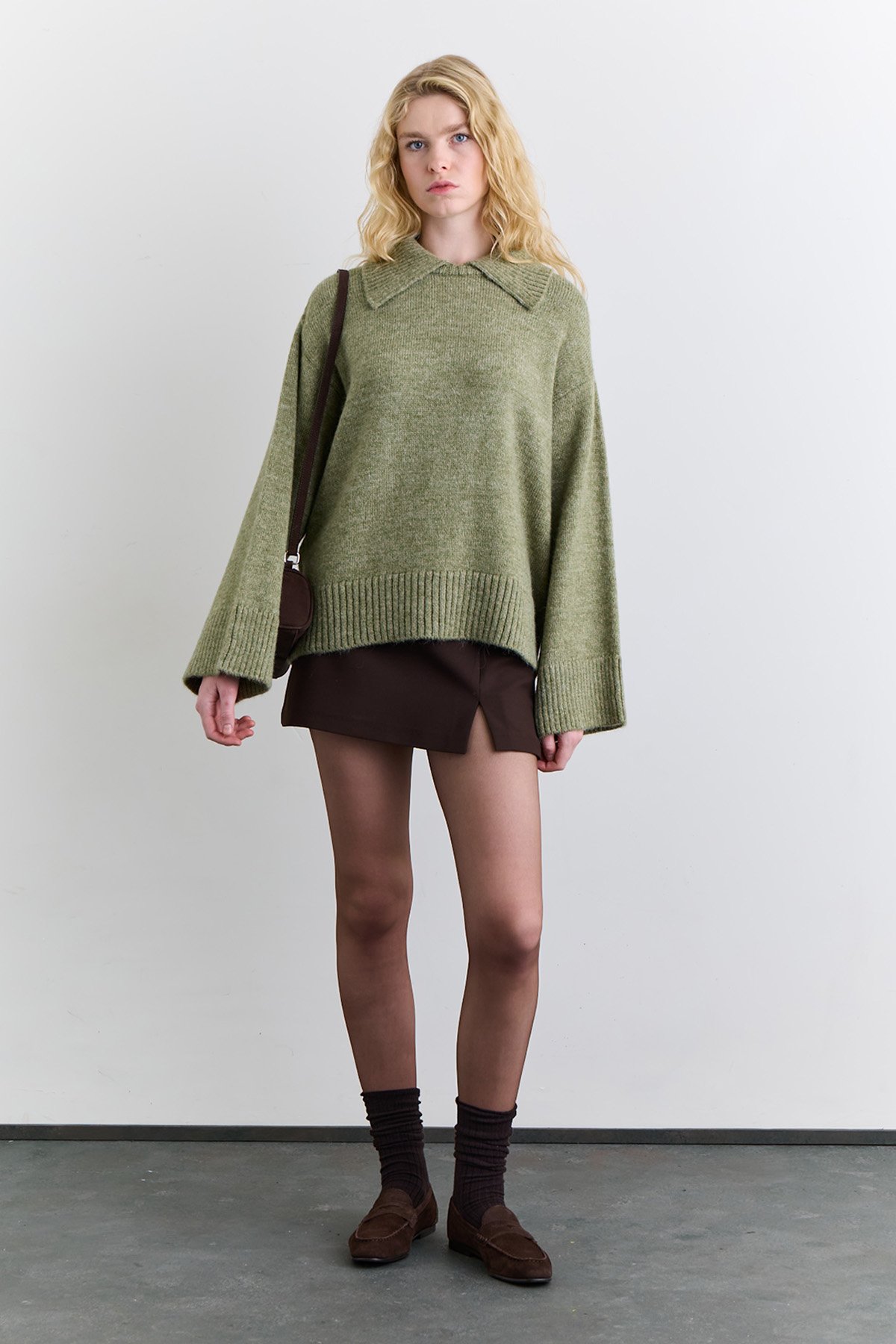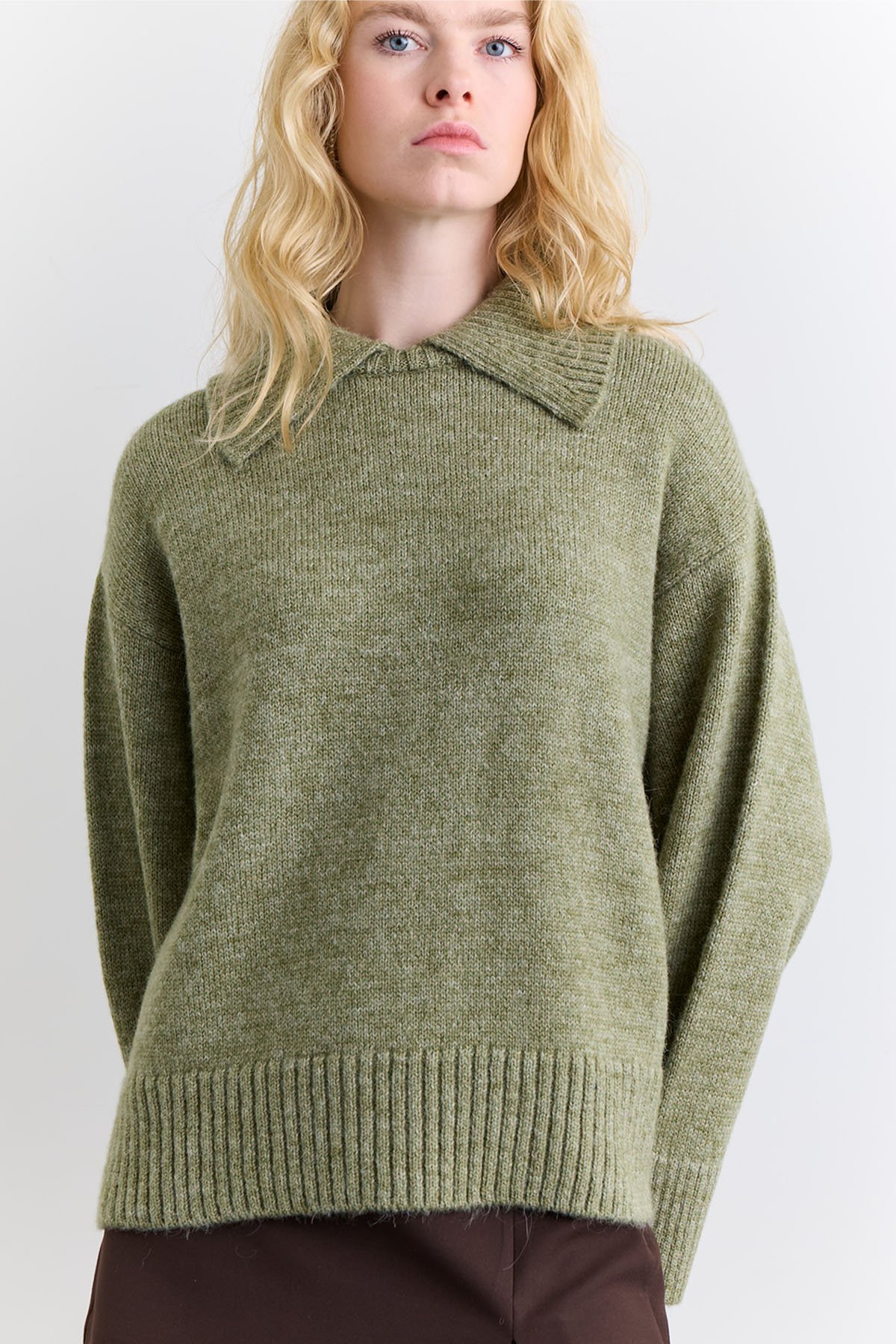 GENİŞ YAKA OVERSIZE KAZAK YEŞİL