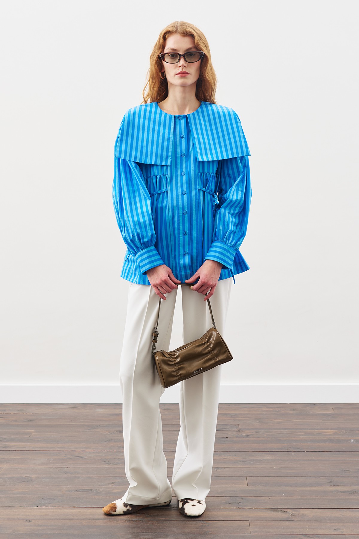 GENİŞ YAKALI KUŞAKLI GÖMLEK MAVİ ÇİZGİLİ ÖZELLİKLERİ