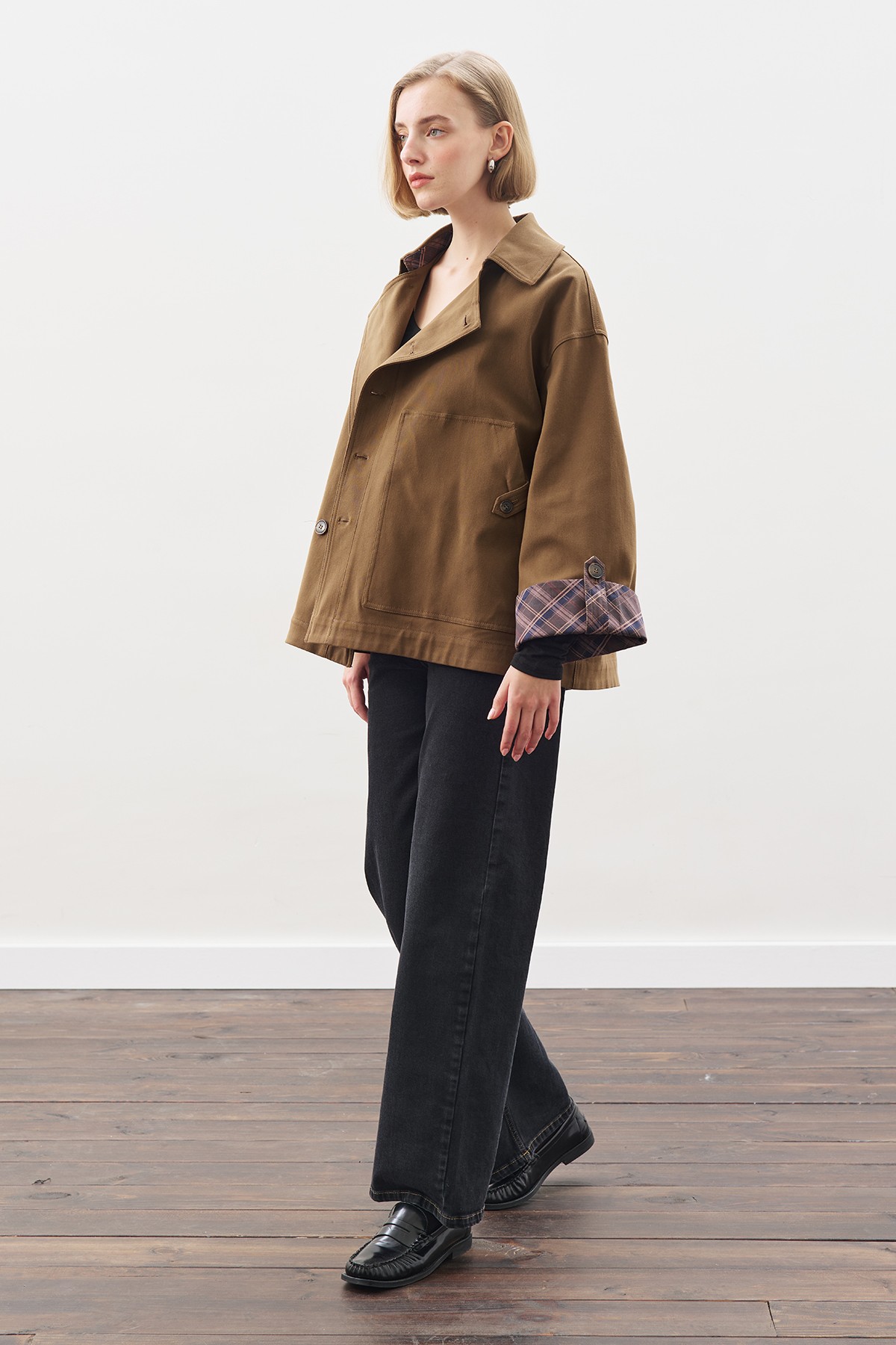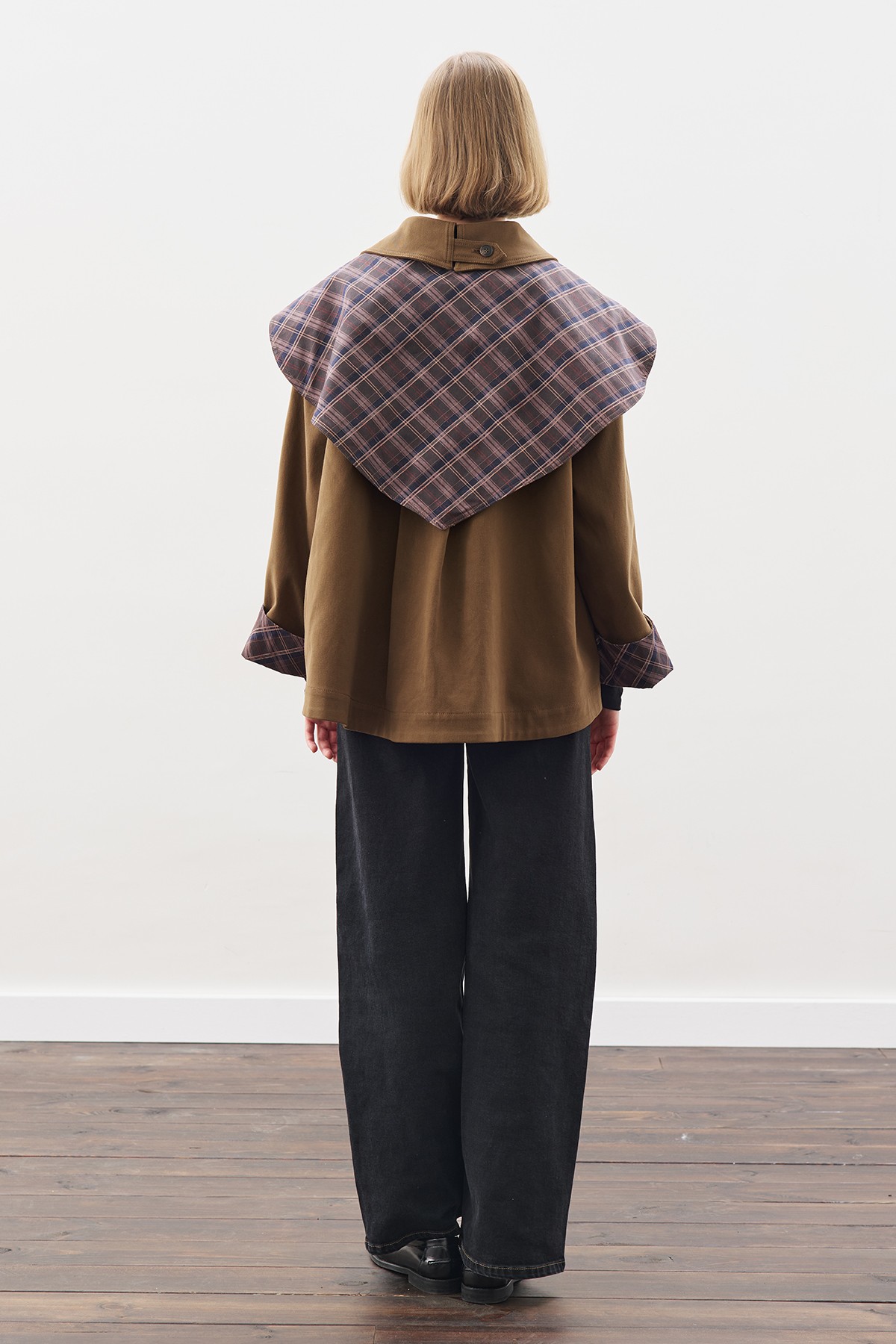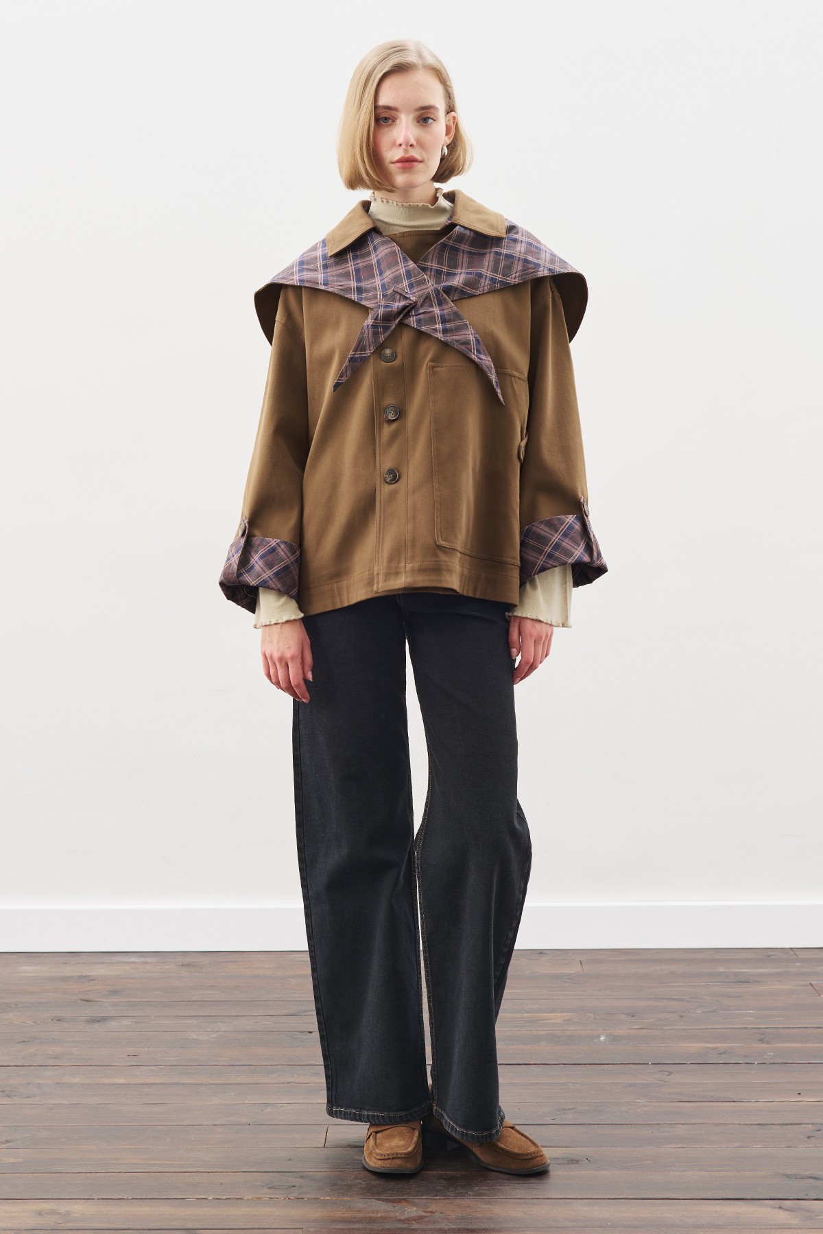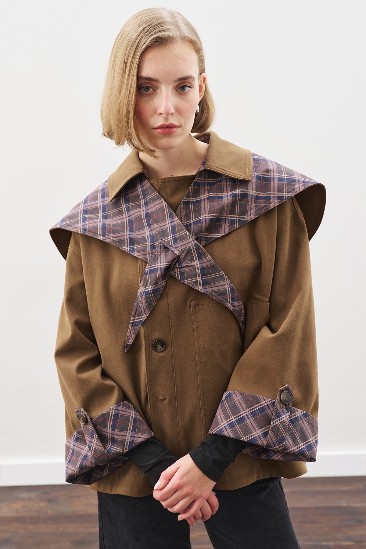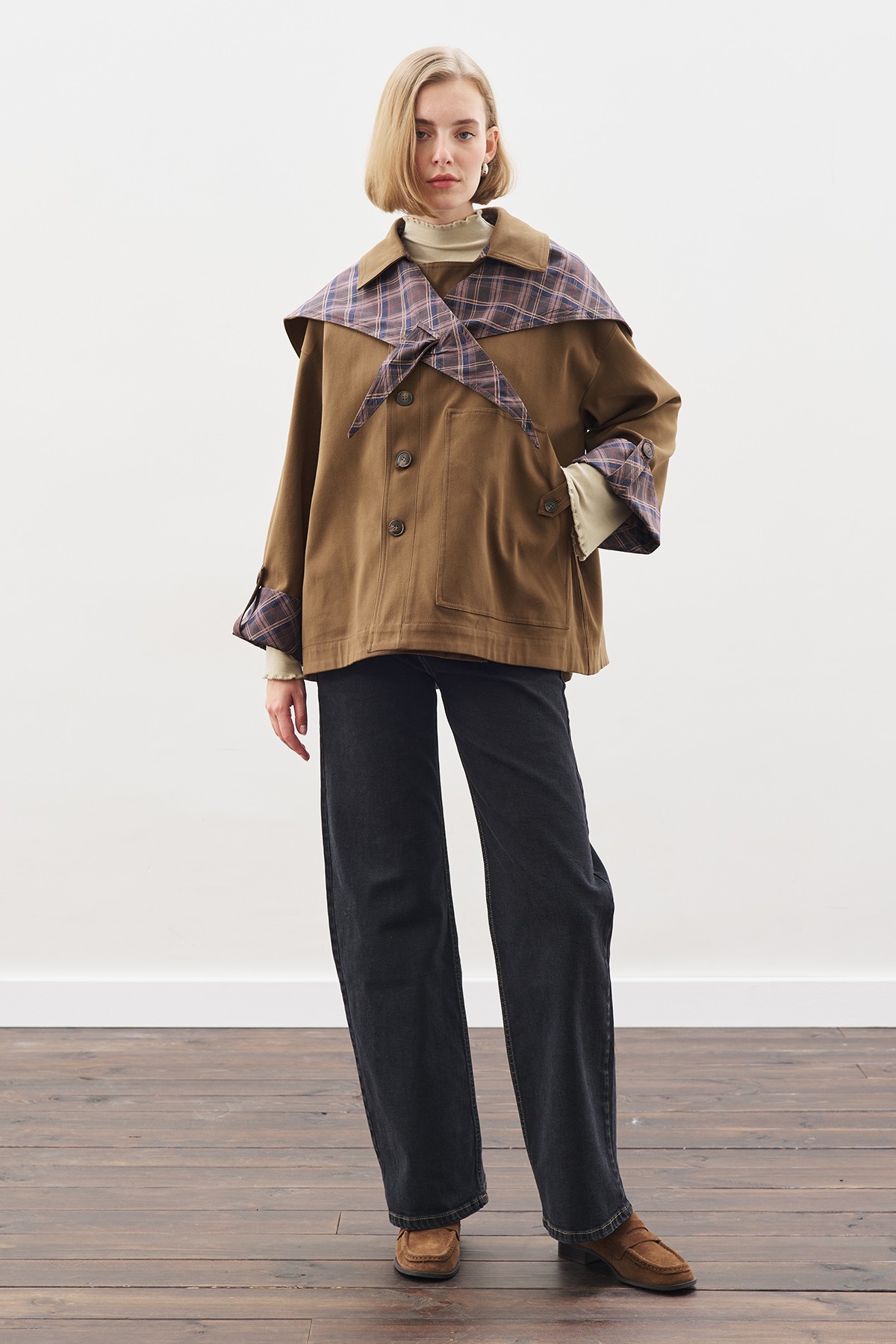Normal kalıp, gömlek yaka, uzun kol, ekose garnili, atkı detaylı, ara boy, düğmeli, astarlı, yalnızca kuru temizleme, dokuma.Ana Kumaş: %97 Pamuk, %3 Elastan