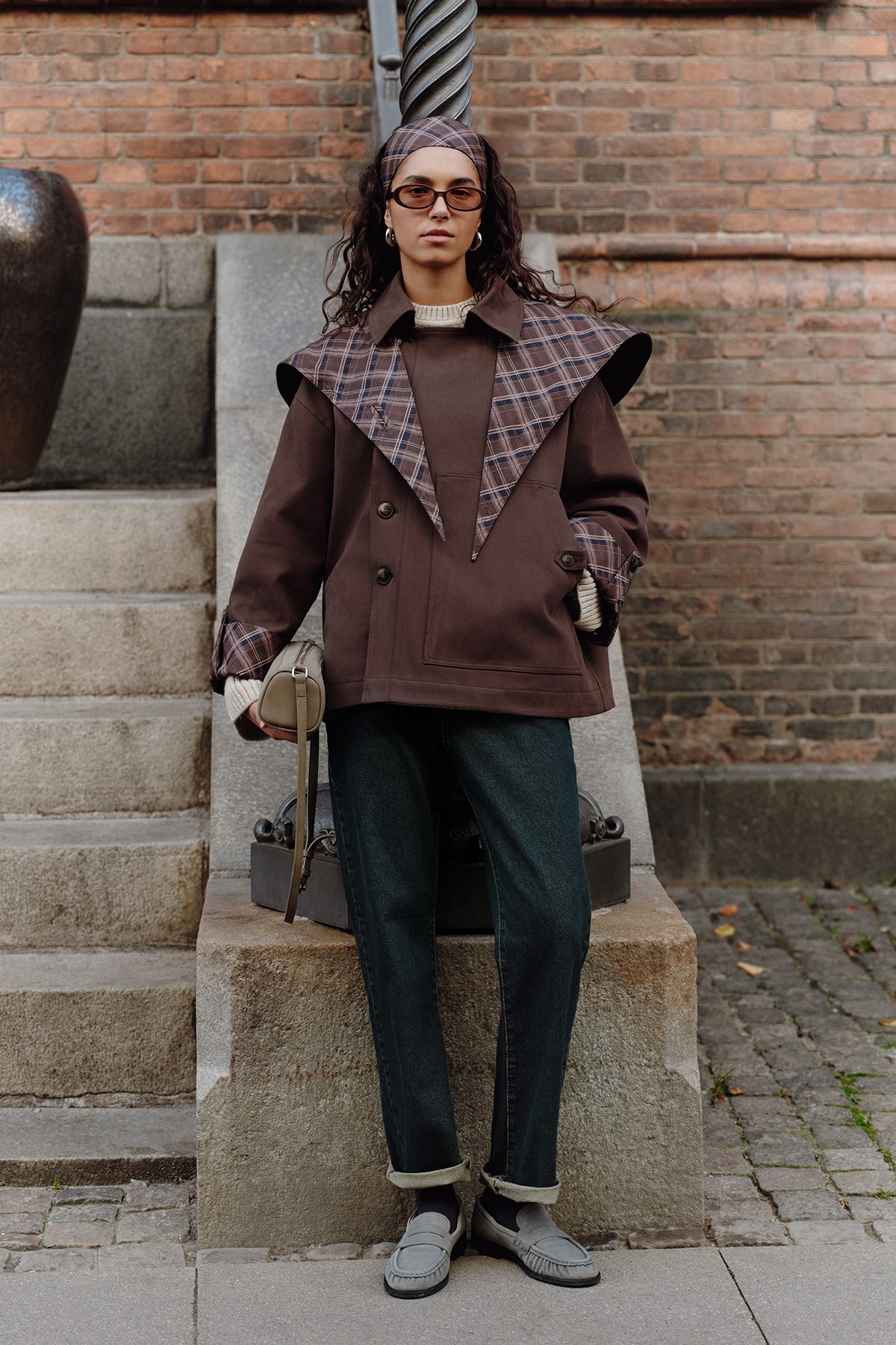 Normal kalıp, gömlek yaka, uzun kol, ekose garnili, atkı detaylı, ara boy, düğmeli, astarlı, yalnızca kuru temizleme, dokuma.Ana Kumaş: %97 Pamuk, %3 Elastan
