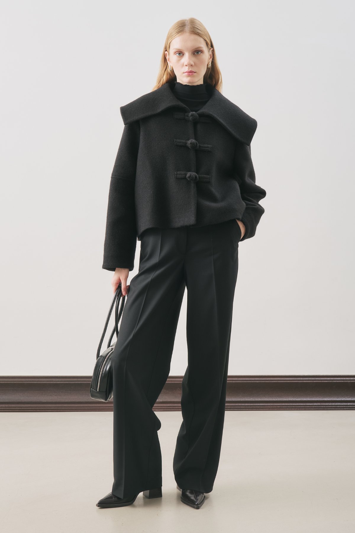 Normal kalıp,geniş yakalı,uzun kol,yaka ve düğme detaylı,crop boy,düğmeli kapama.Ana Kumaş %100 Polyester