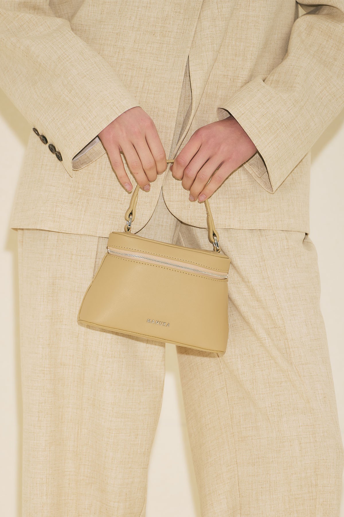 Küçük boy, içte cep detaylı, manuka logolu, ayarlanabilir askı, fermuar kapamalı, suni deri, astarlı.