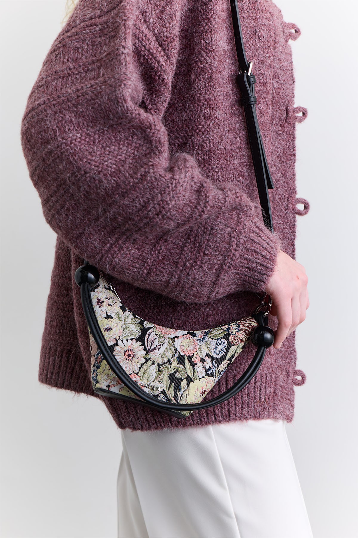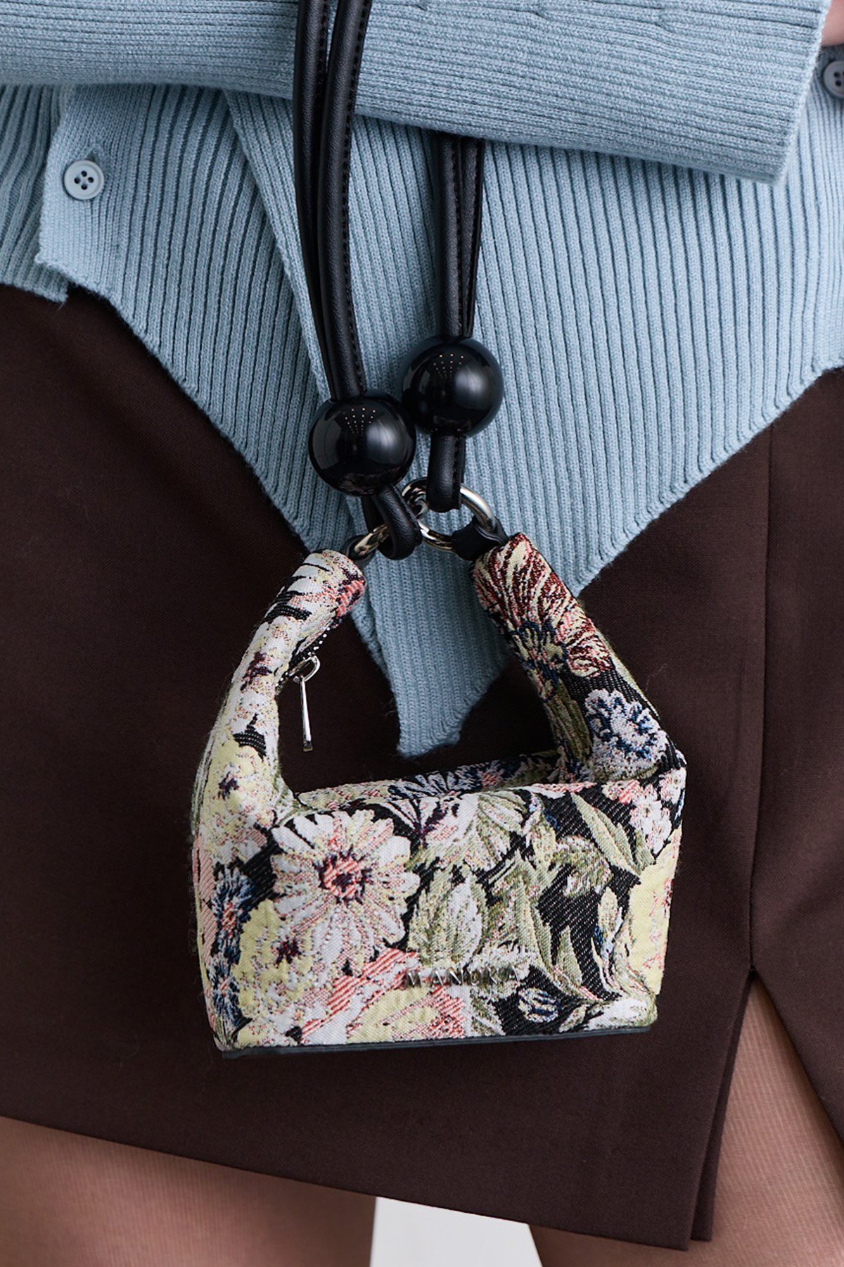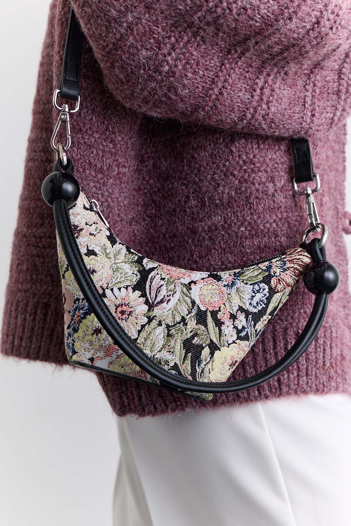 Küçük boy, içte cep detaylı, kısa ve uzun askılı, aksesuar detaylı, manuka logolu, jakar desenli, fermuar kapamalı, dokuma-suni deri, astarlı.