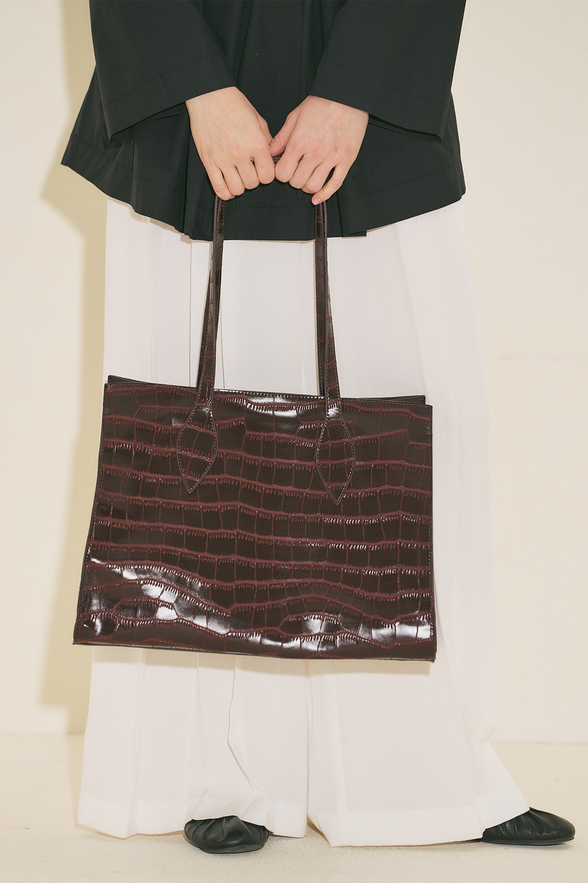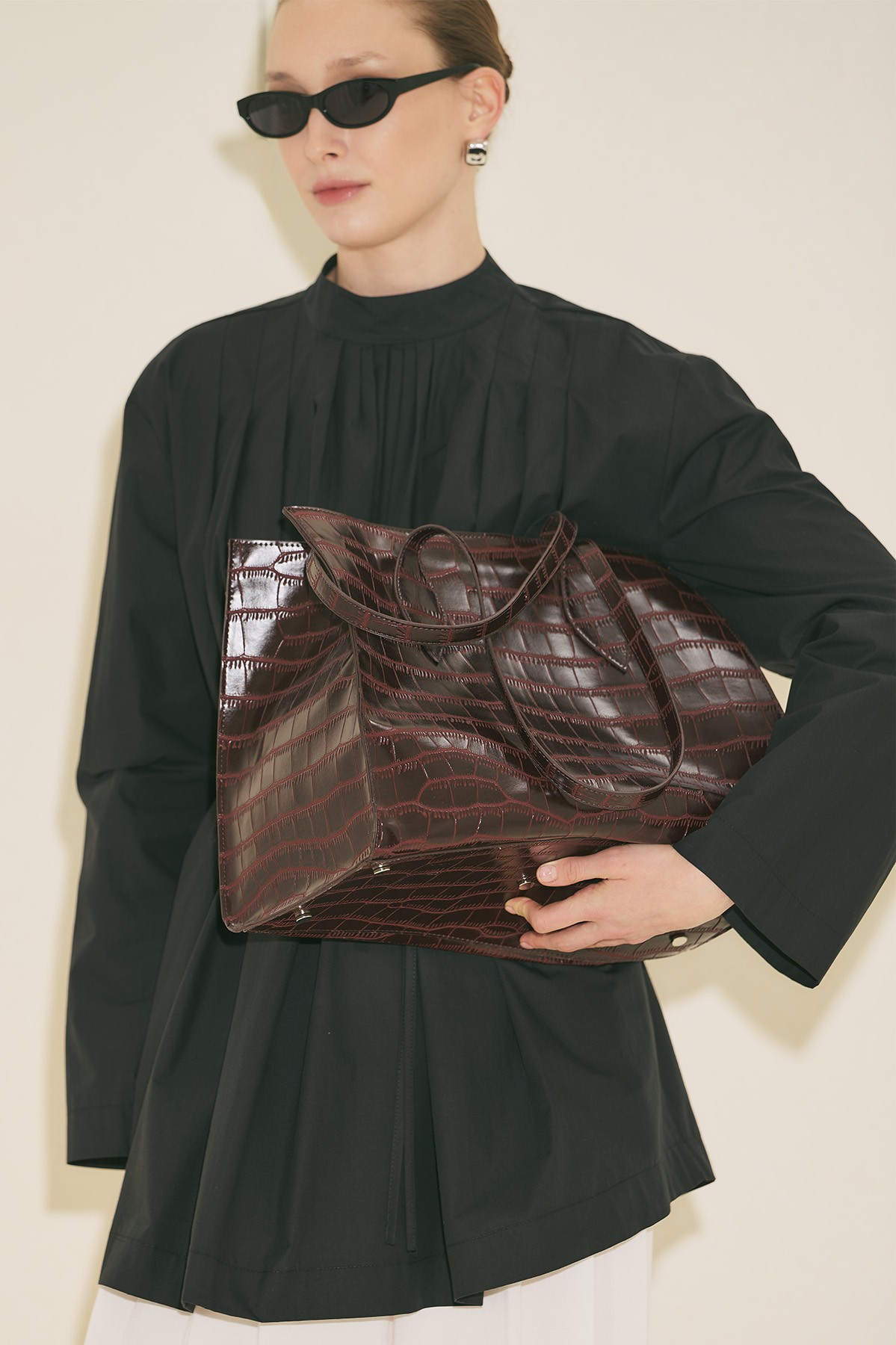 Büyük boy, kabartmalı, içte cep detaylı, mıknatıs kapama, suni deri, astarlı.