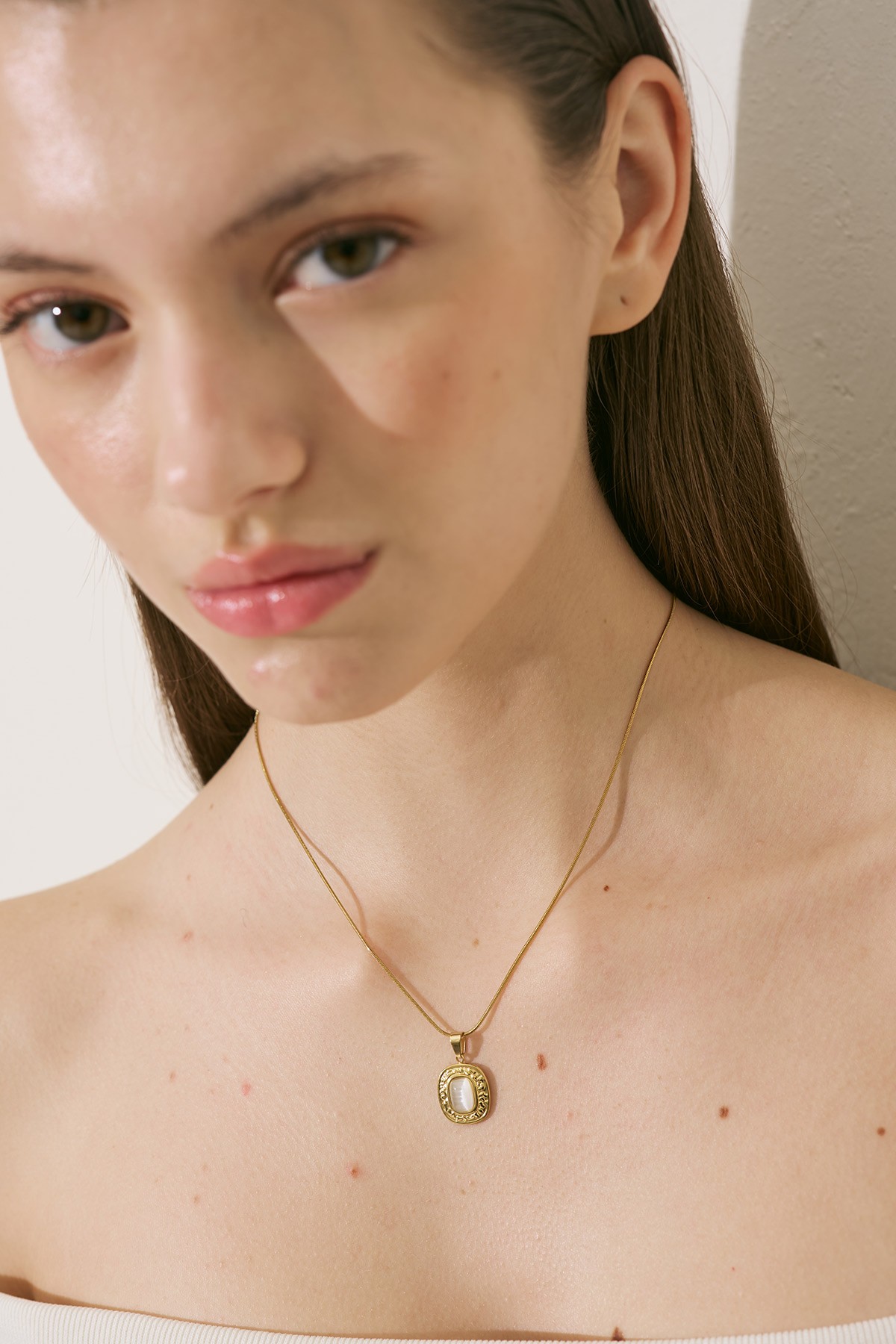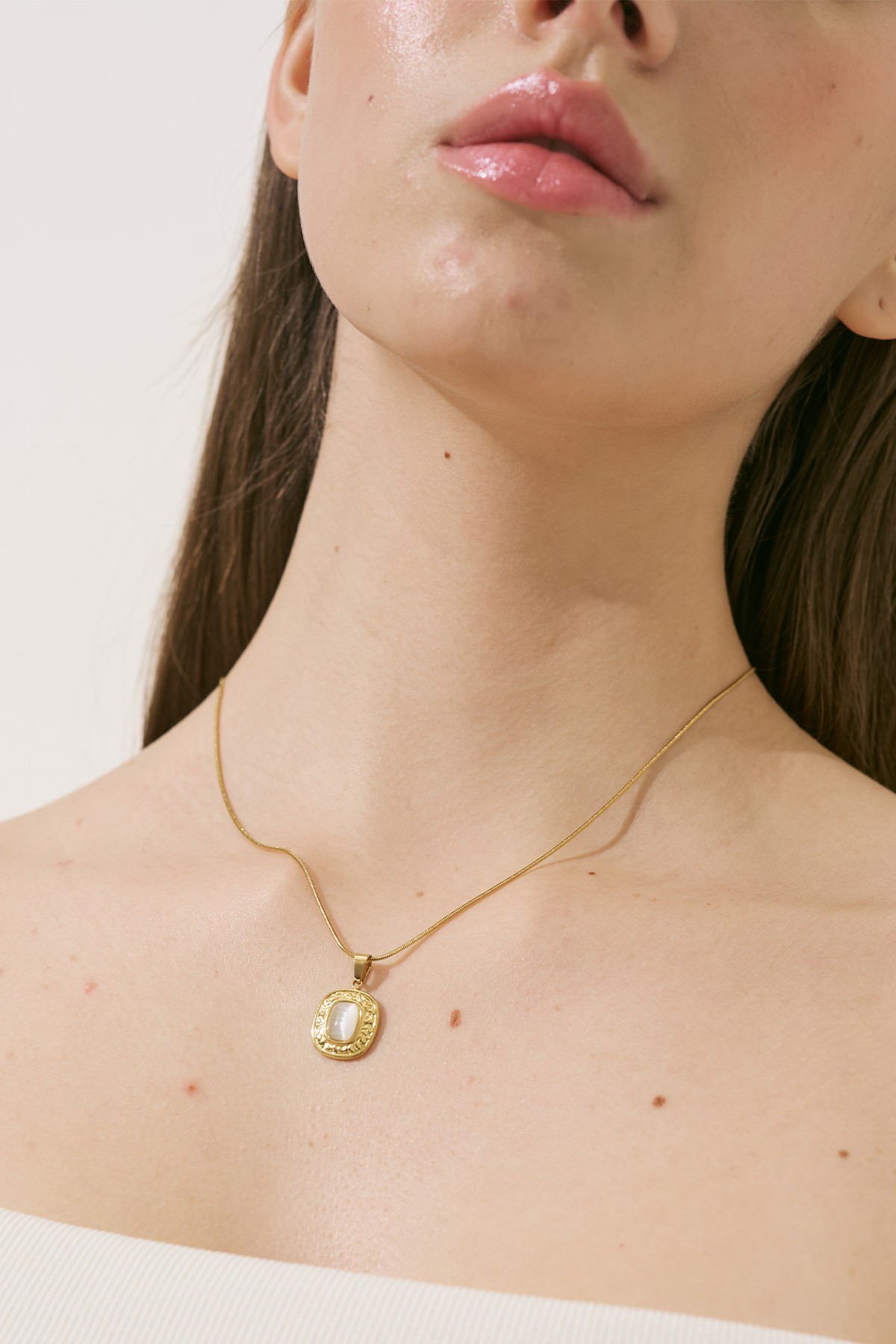 SQUARE SHAPED STONE MEDALLION NECKLACE GOLD