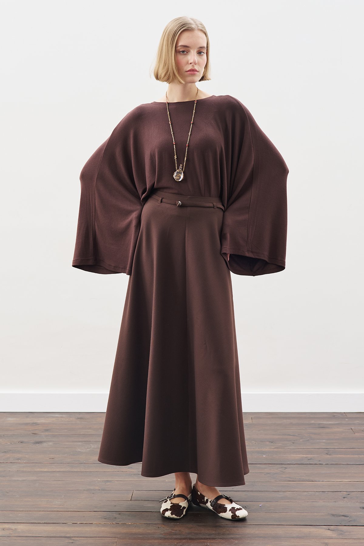KEMER DETAYLI KLOŞ ETEK ACI KAHVE
