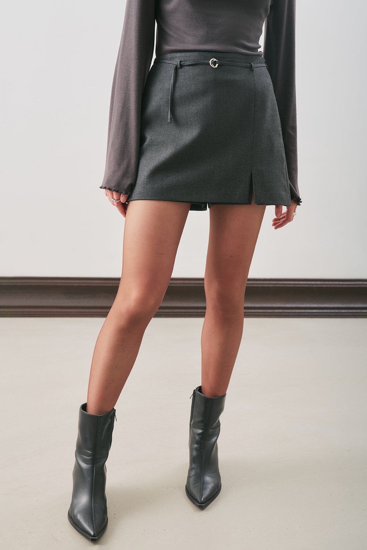 KEMER DETAYLI MİNİ ETEK ANTRASİT