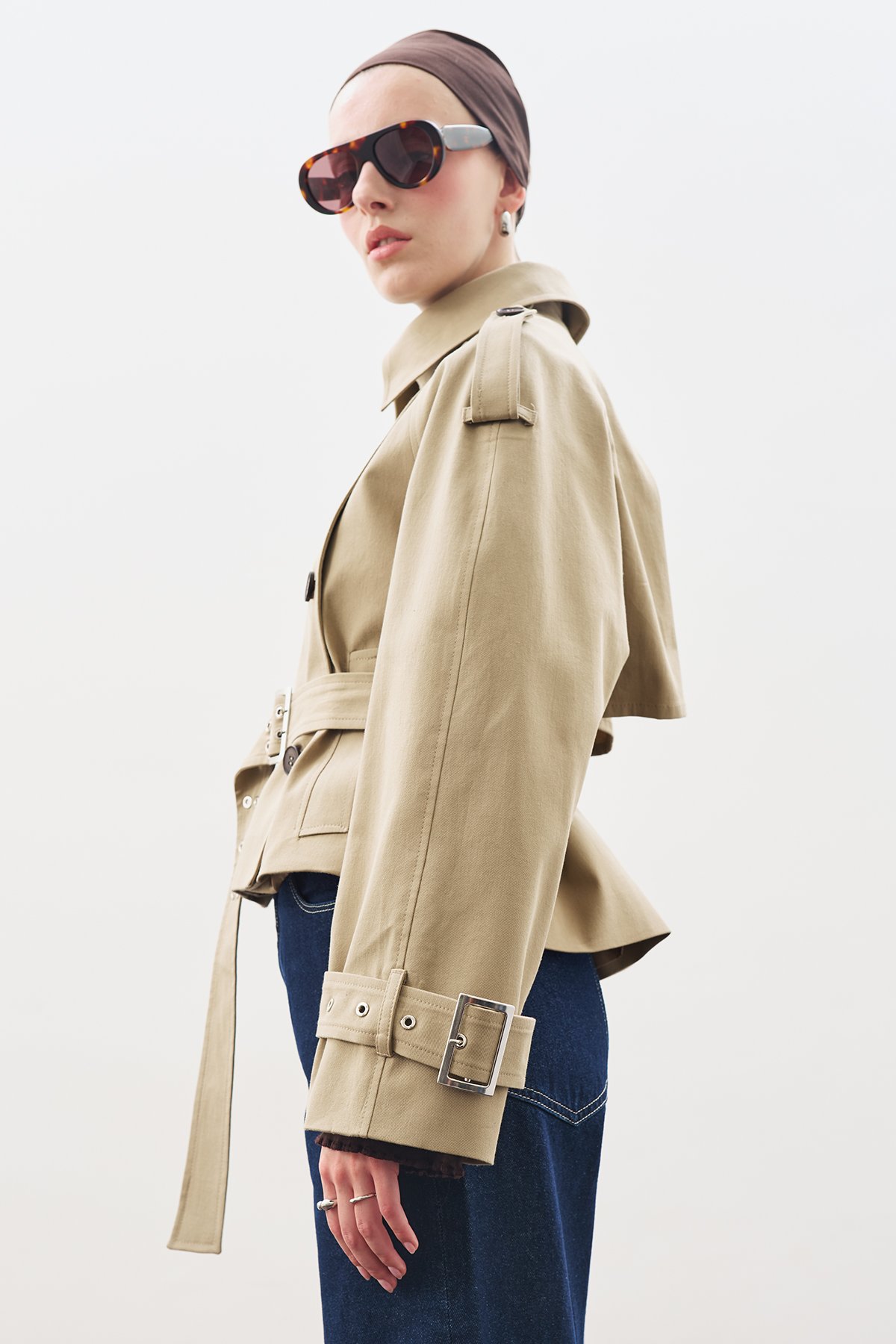 KEMERLİ KISA TRENÇKOT KUM ÖZELLİKLERİ