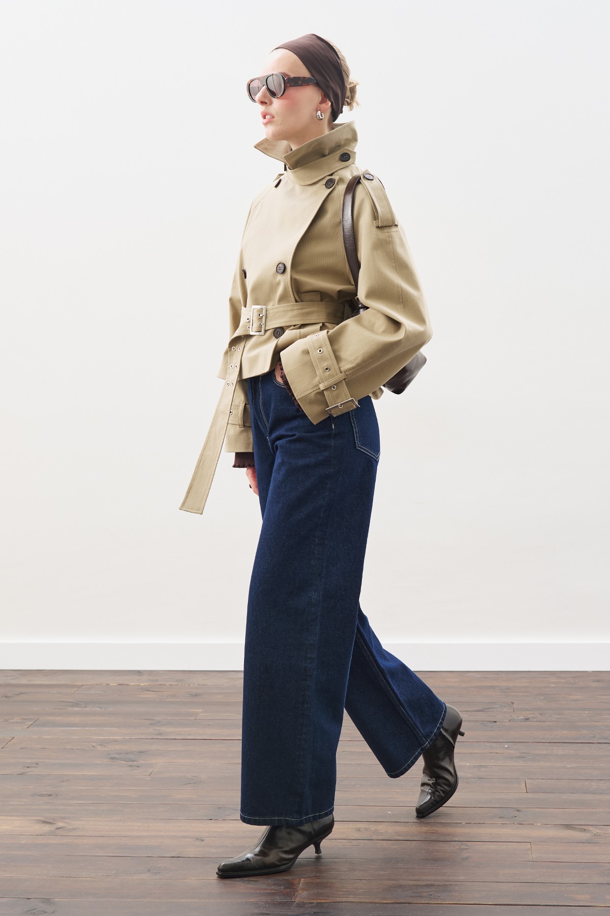 Ceket yakalı, uzun kollu, crop boy, kuşak detaylı, kruvaze kapamalı, normal kalıp, dokuma kumaş.Ana Kumaş %80 Akrilik %15 Keten %5 Elastan