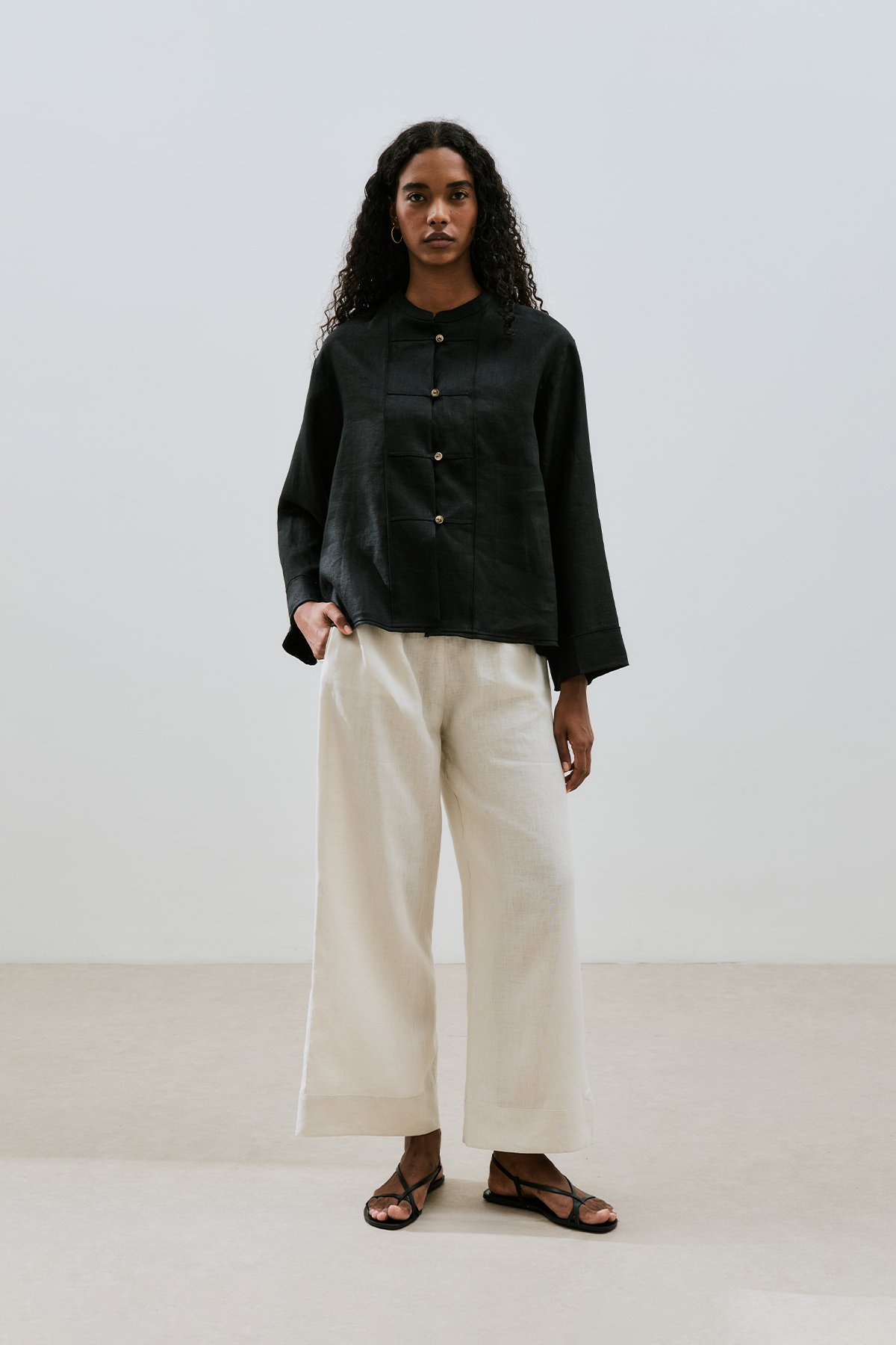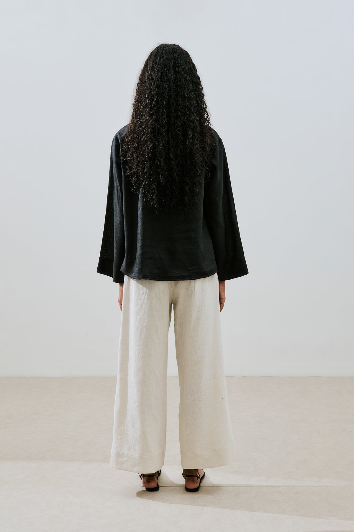 KETEN ÖNDEN DÜĞMELİ GÖMLEK SİYAH