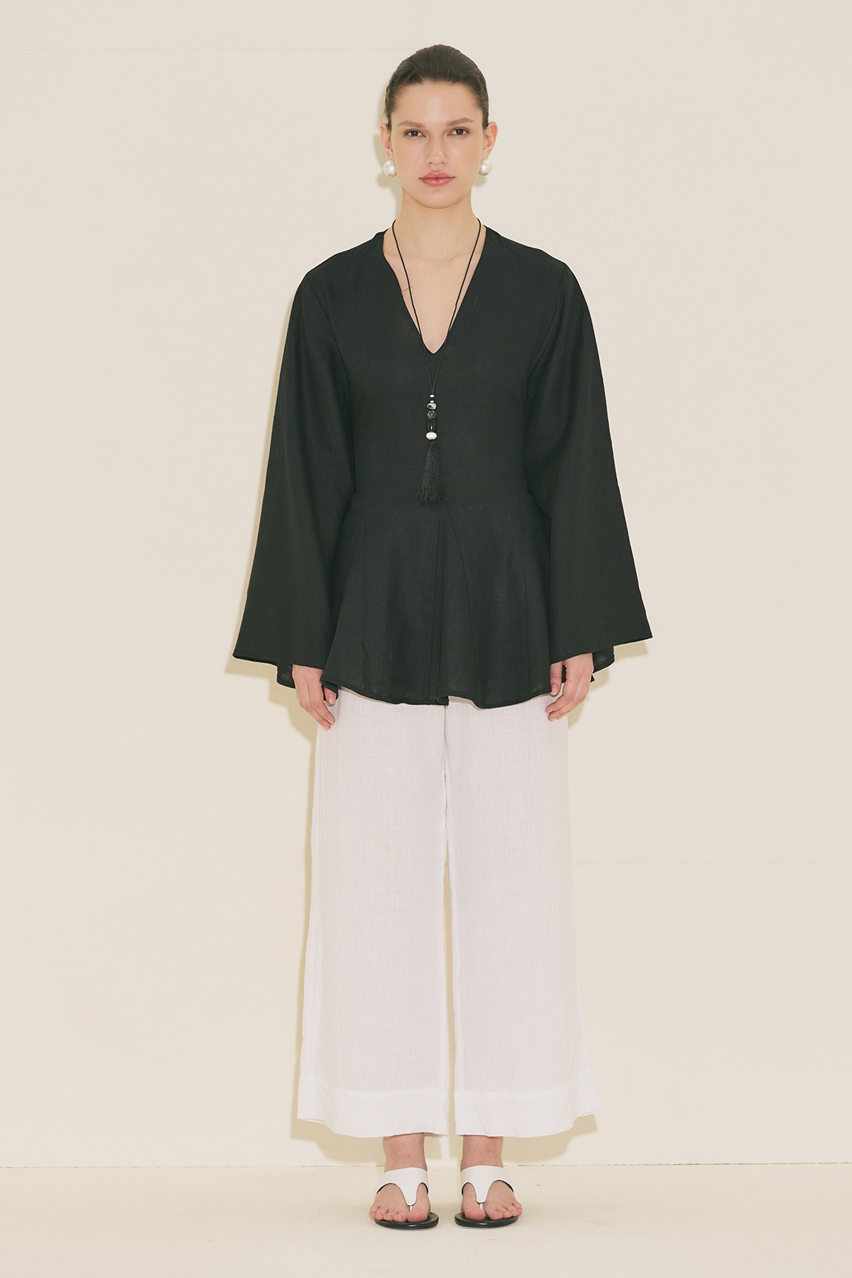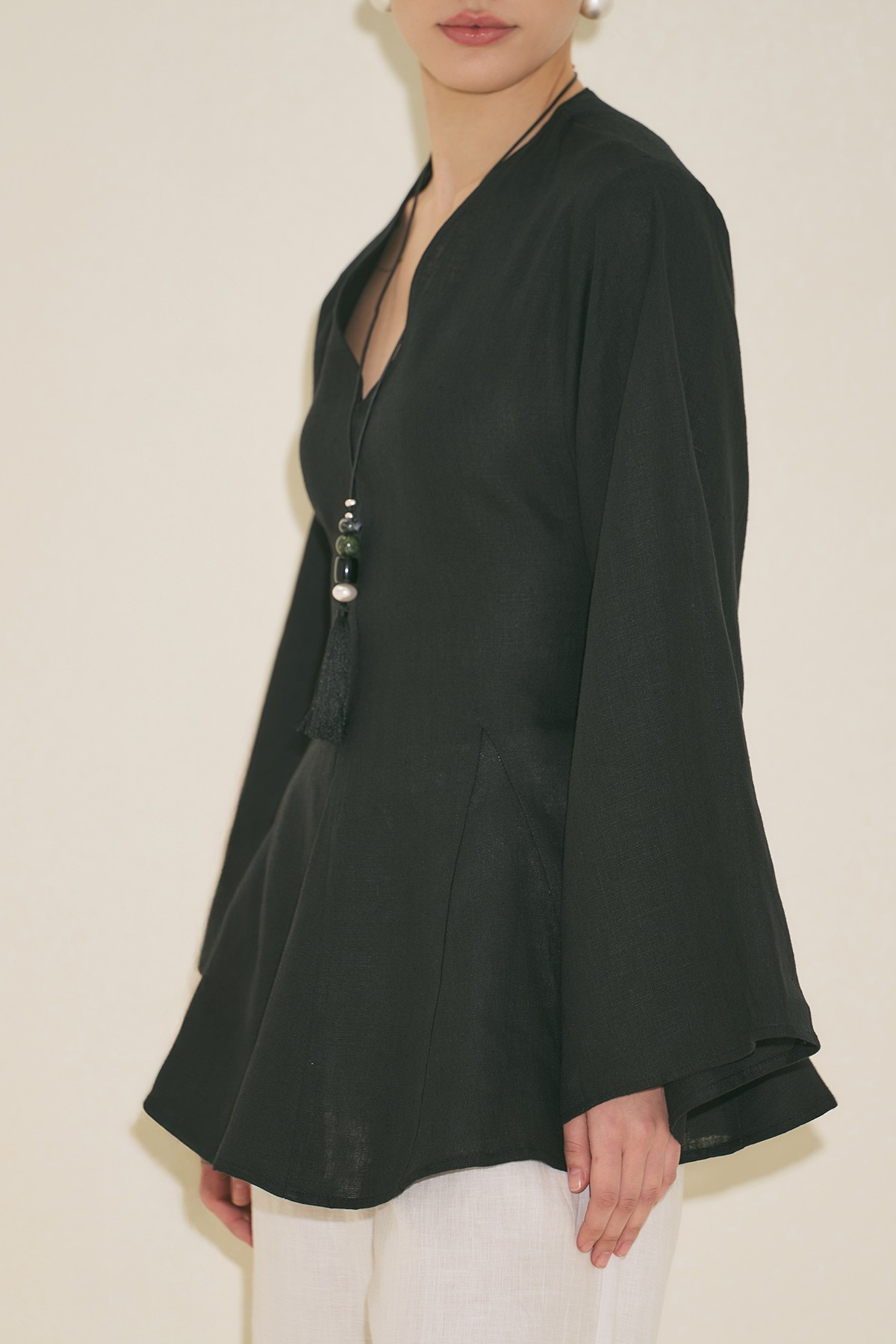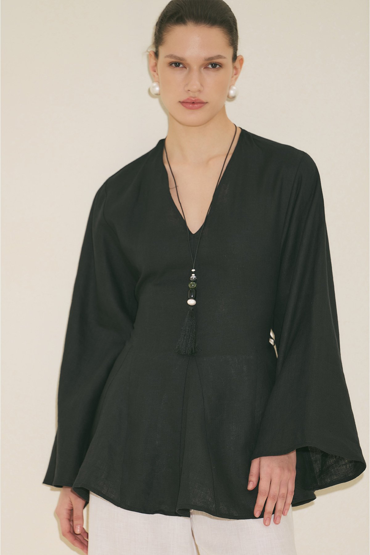 %100 KETEN VOLÜMLÜ TUNİK SİYAH