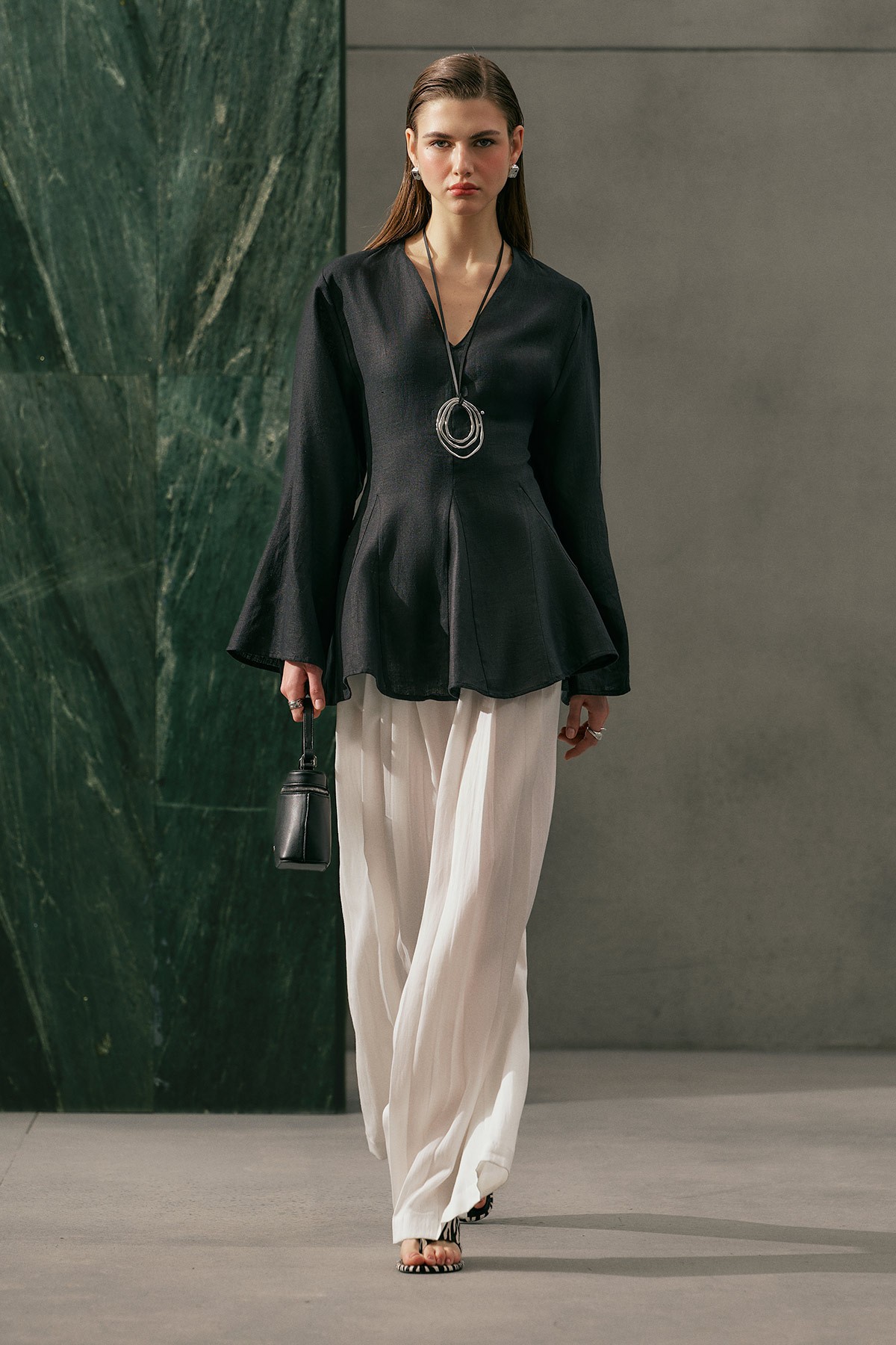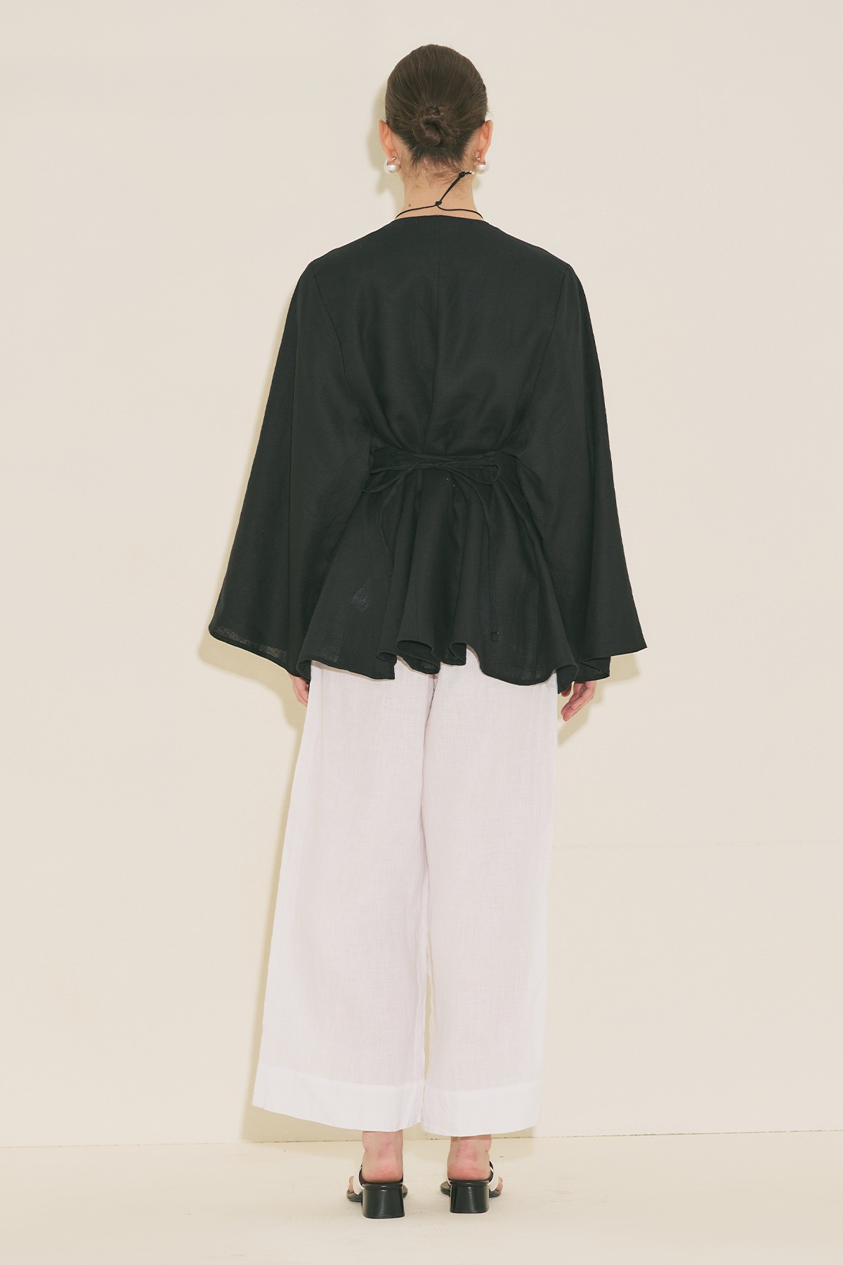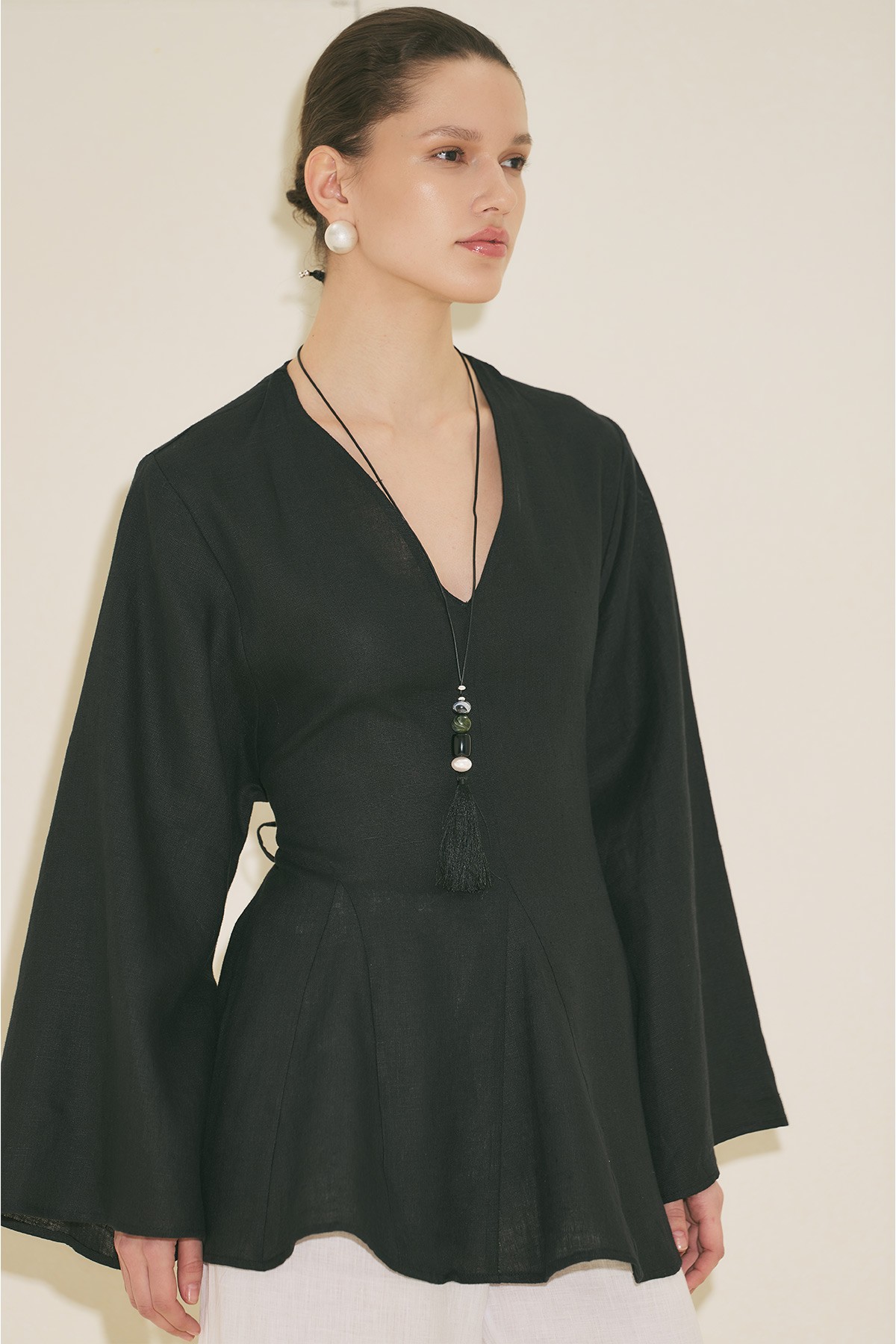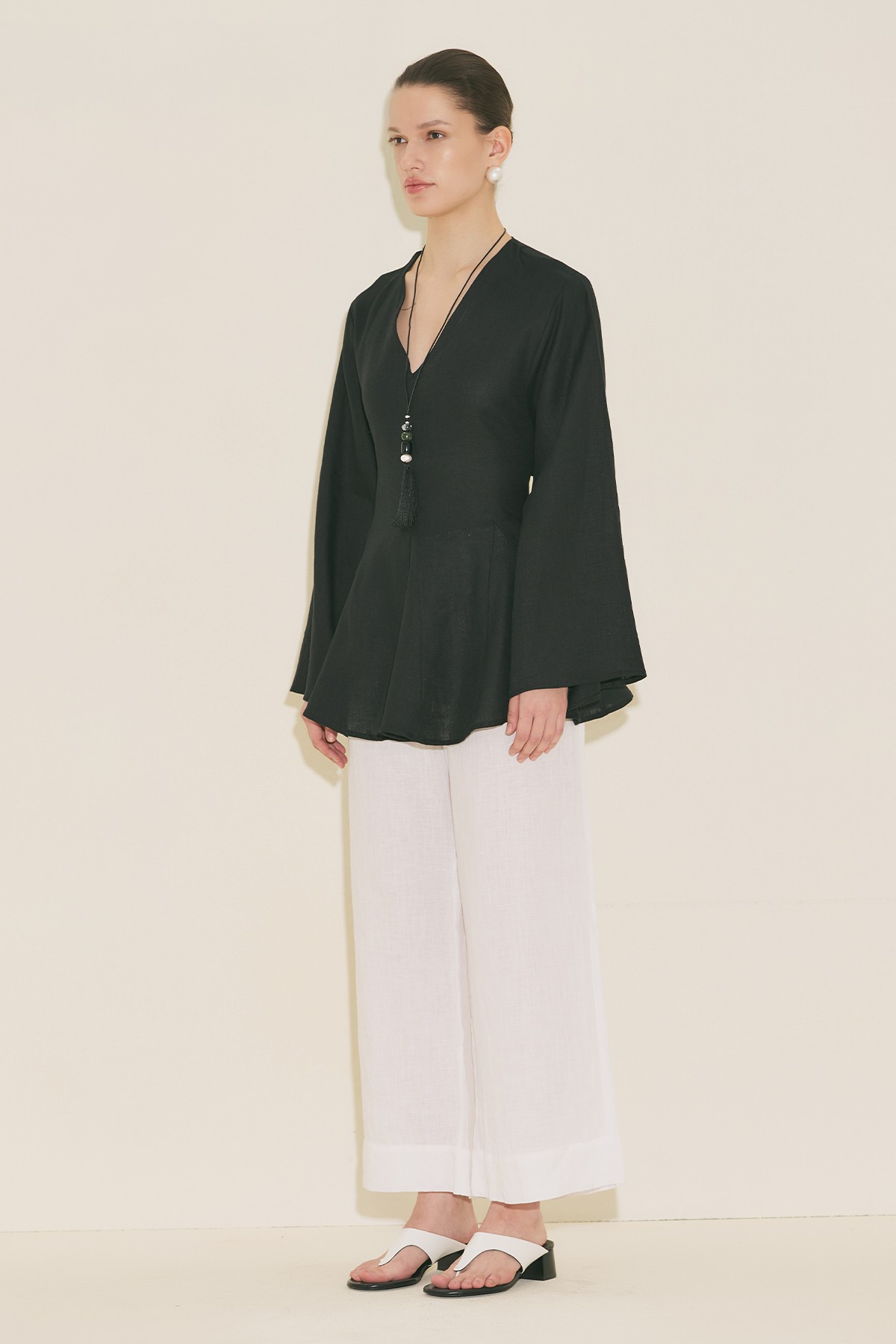%100 KETEN VOLÜMLÜ TUNİK SİYAH