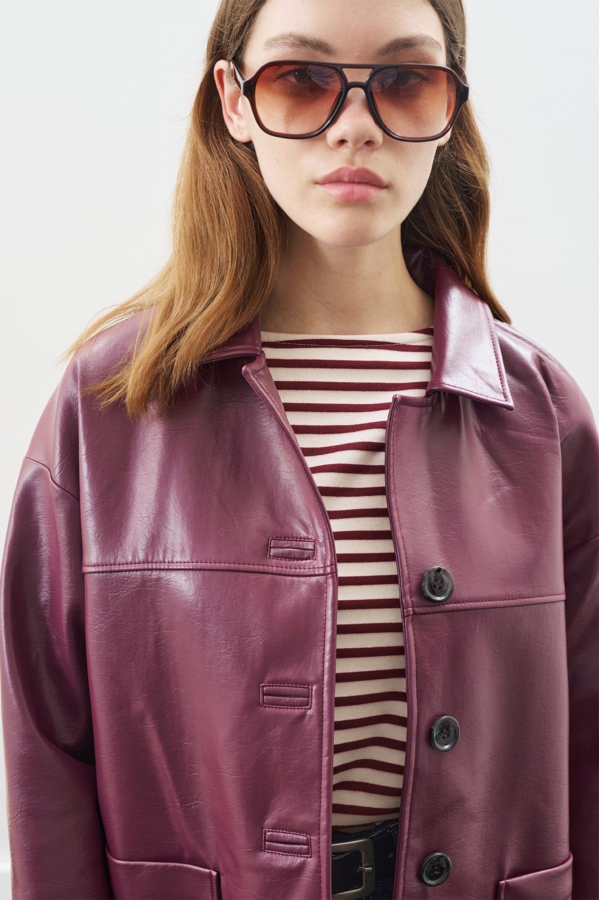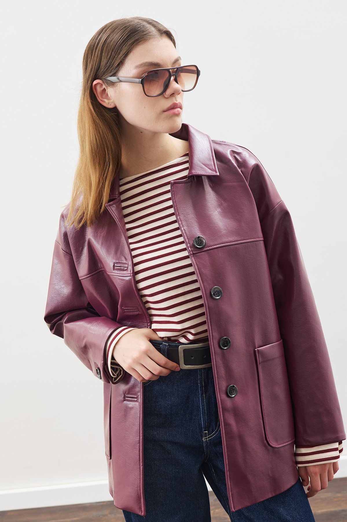 KLASİK KESİM DERİ CEKET MÜRDÜM