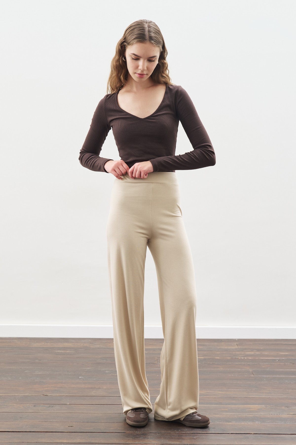 Üst beden: Yuvarlak yaka, uzun kol,broş detaylı,tunik boy normal kalıp.Alt beden: normal kalıp,düz paça,tam boy.Ana Kumaş %50 Pamuk,%20 Viskon,%20 Polyester,%10 Akrilik