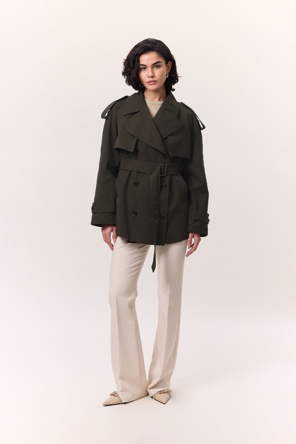 KRUVAZE KESİM KISA TRENÇKOT VİZON