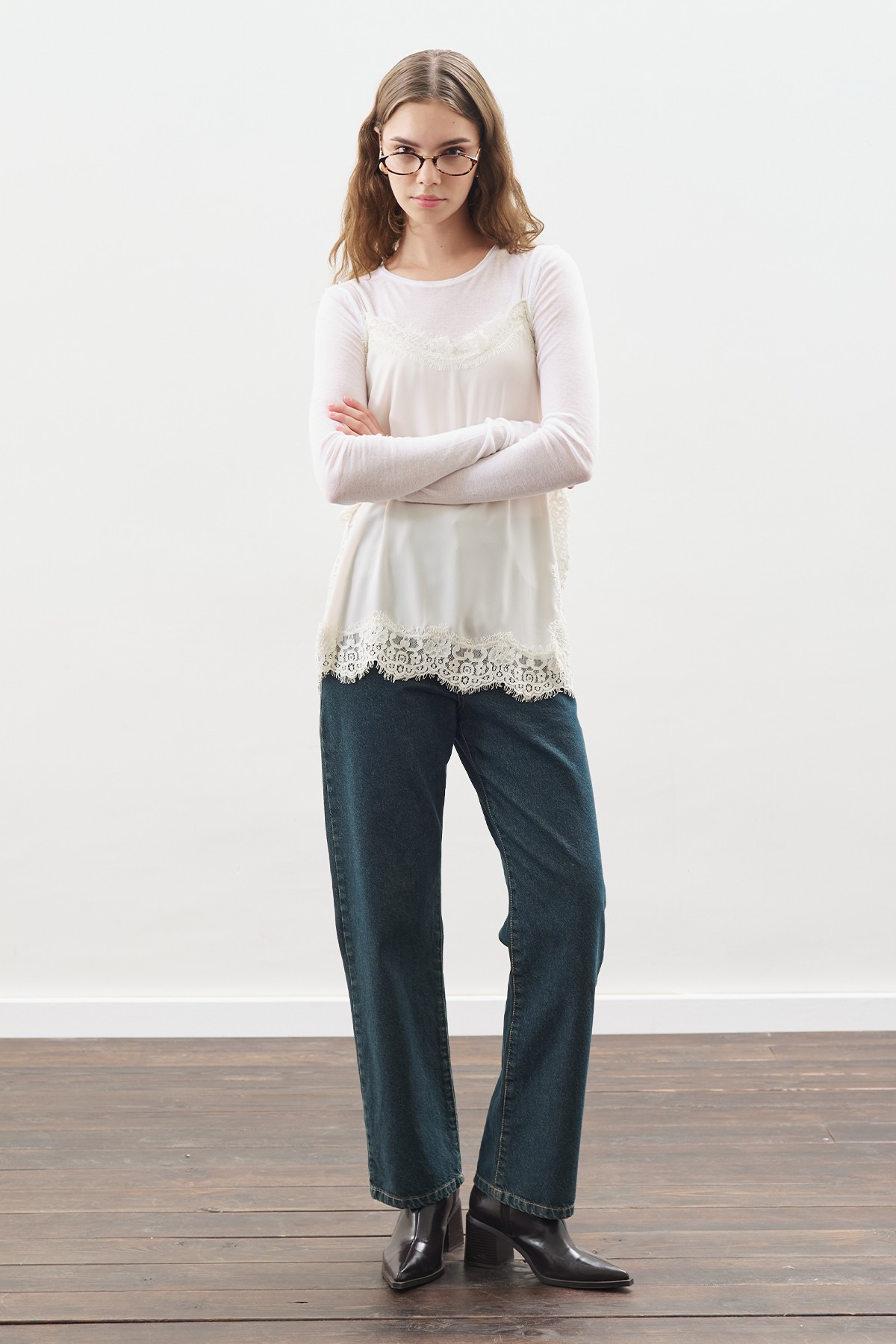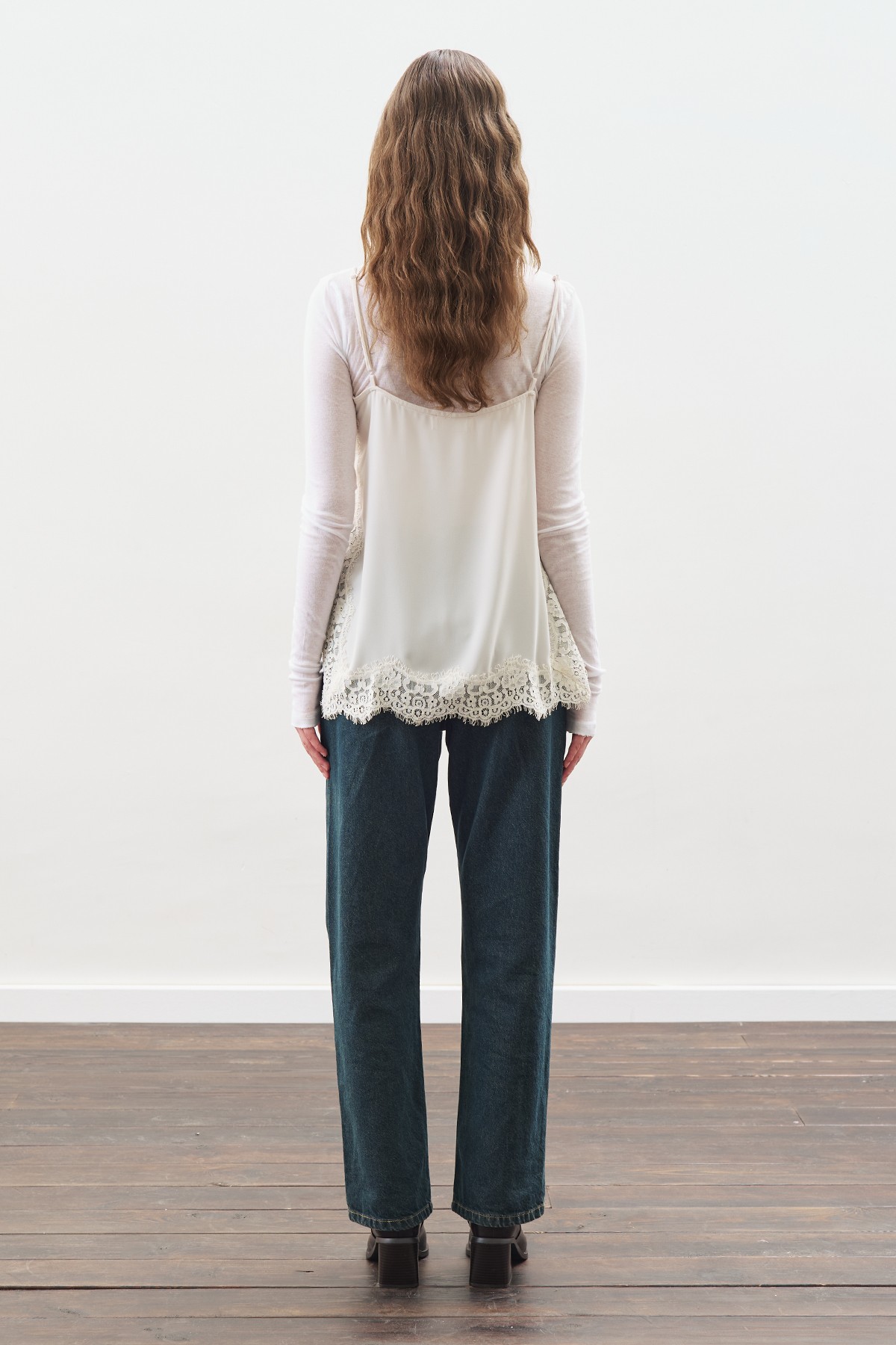 LACE-STRIP STRAP BLOUSE ECRU