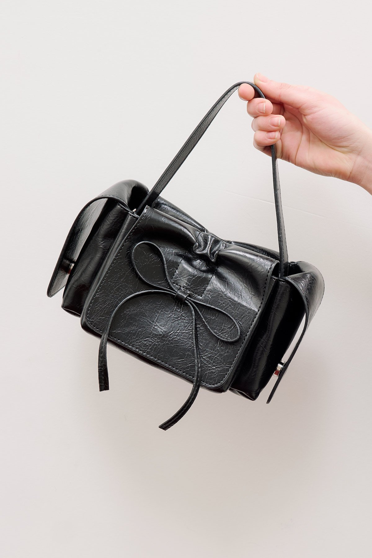 Orta boy, omuz çantası, fiyonk ve büzgü detaylı, içte ve yanlarda cep detaylı, kısa ve uzun askı detaylı, çıt çıt kapamalı, suni deri, astarlı.