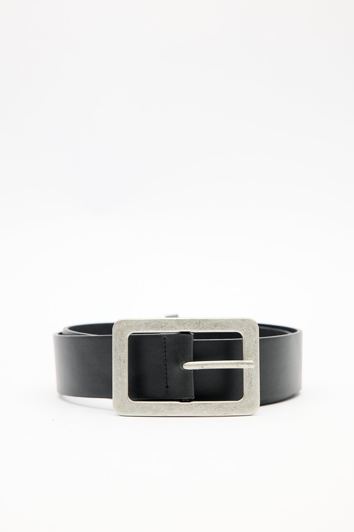 Square antique nickel-plated buckle belt, adjustable faux leather. Main Fabric: 30% Polyurethane, 60% Polyester, 10% Polyvinyl Chloride Do not wash Do not bleach Do not iron Do not dry clean Do not tumble dry.