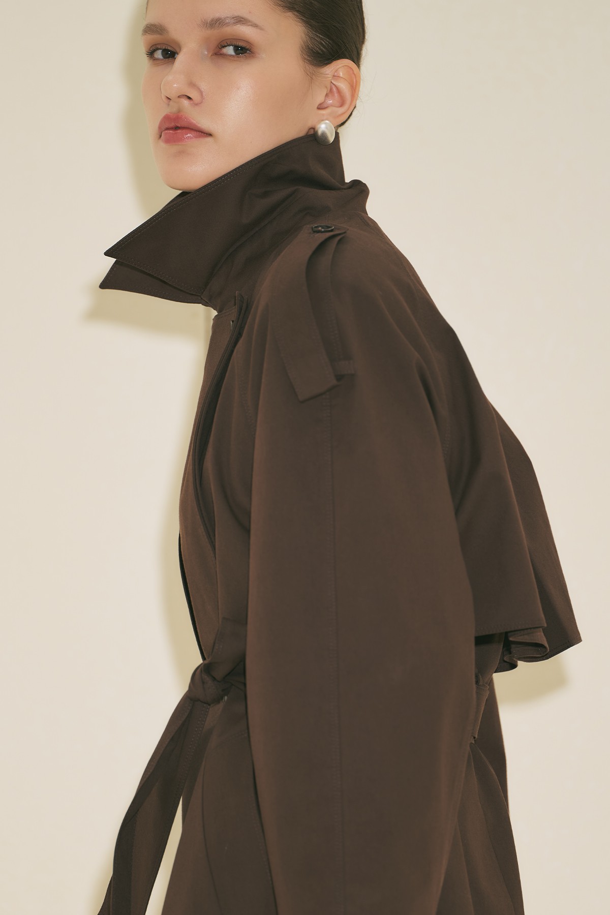 Regular form, gömlek yaka, uzun kollu, midi boy, rüzgarlık detaylı, cepli, apoletli, kanca ve düğme kapamalı.