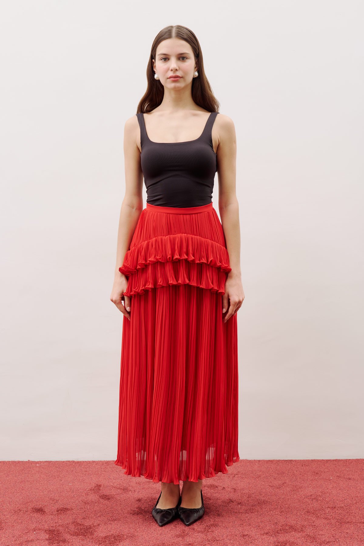 Normal kalıp, tam boy, piliseli katlı etek, hassas kumaştır dikkatli kullanınız. Dokuma. Astarlı.