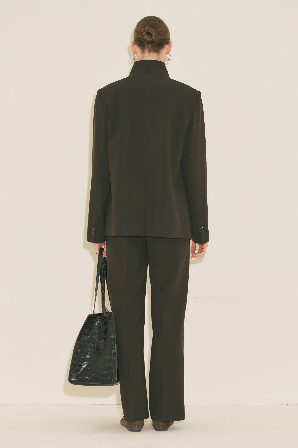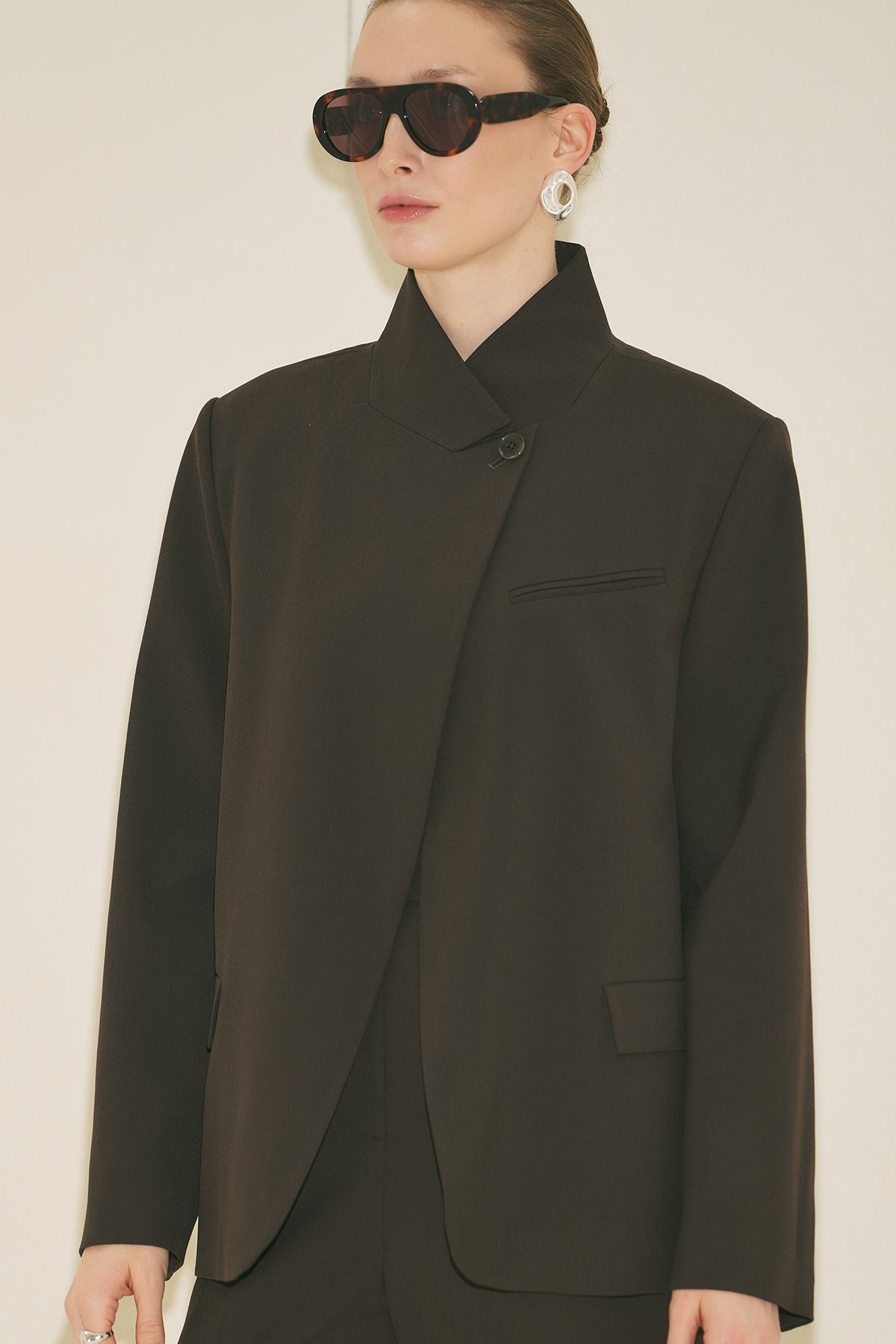 Fit kalıp, yüksek yaka, uzun kol, ara boy, cep detaylı, kruvaze kapamalı.