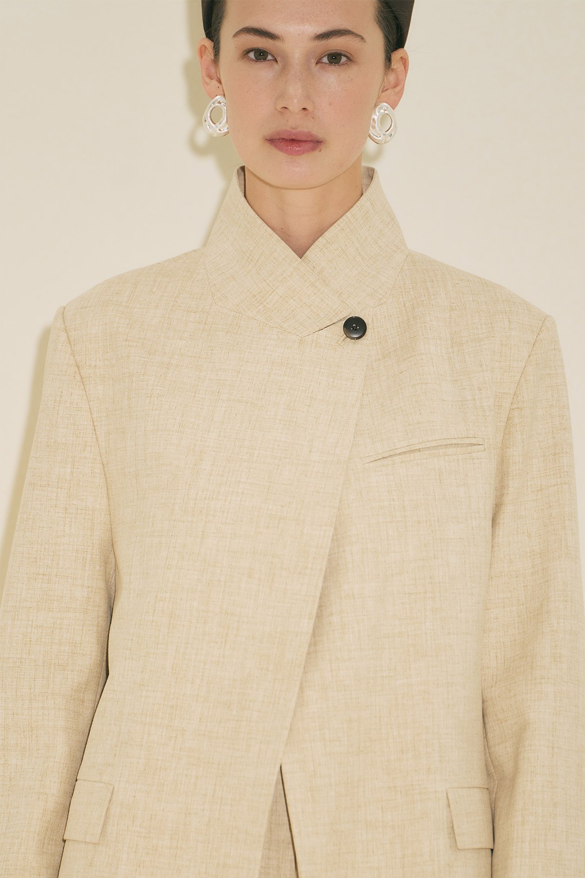 Fit kalıp, yüksek yaka, uzun kol, ara boy, cep detaylı, kruvaze kapamalı.