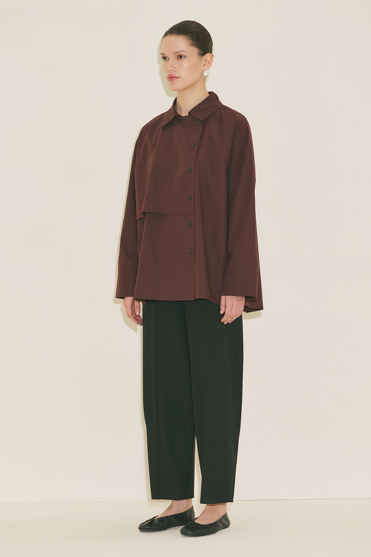 Regular form, gömlek yaka, uzun kol, ara boy, rüzgarlıklı, pileli, geniş manşet detaylı, kruvaze düğme kapamalı.