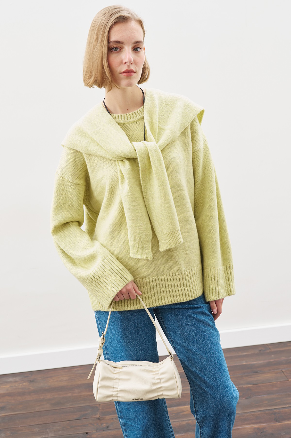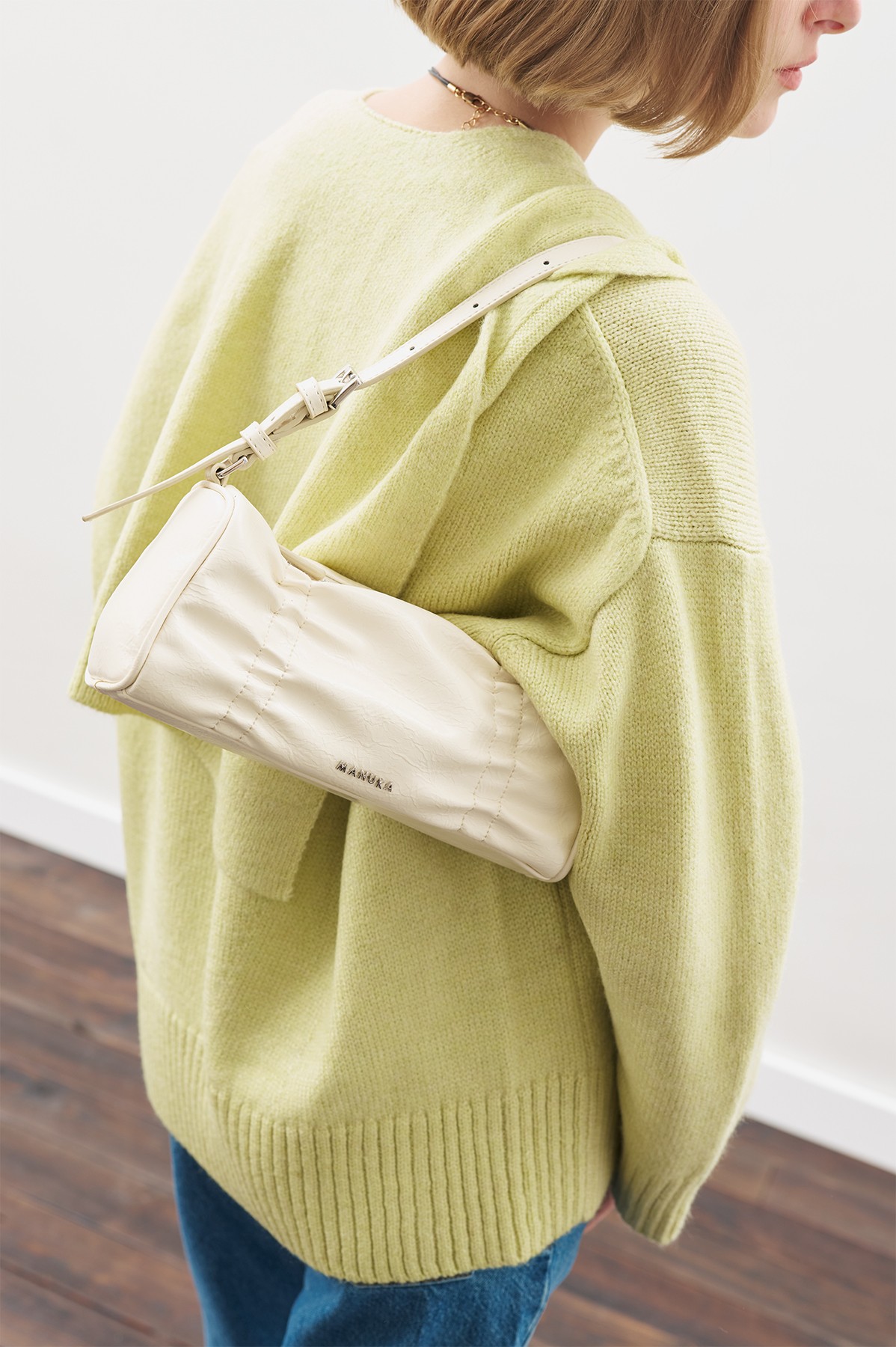 Büzgü detaylı,fermuar kapamalı,suni deri,astarlı.Astar: %100 Polyester