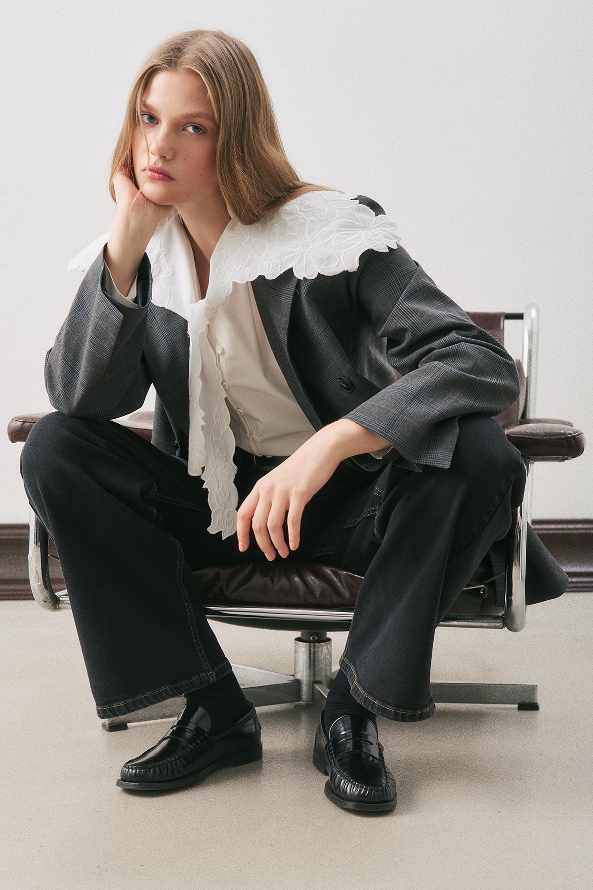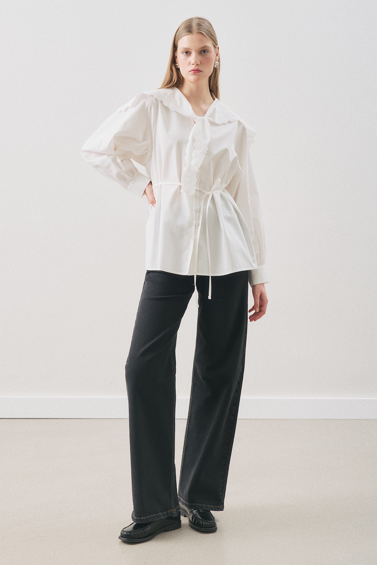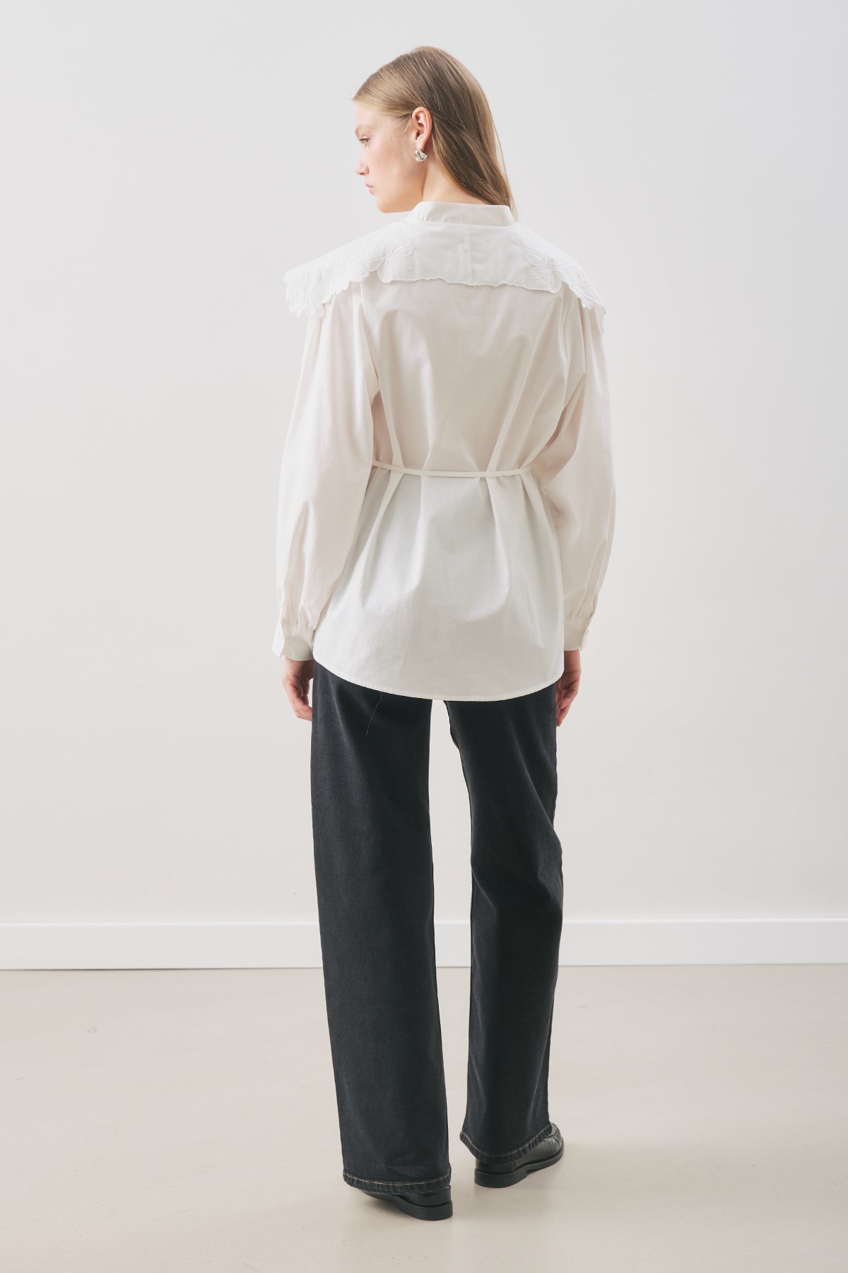 NAKIŞLI GENİŞ YAKA GÖMLEK EKRU