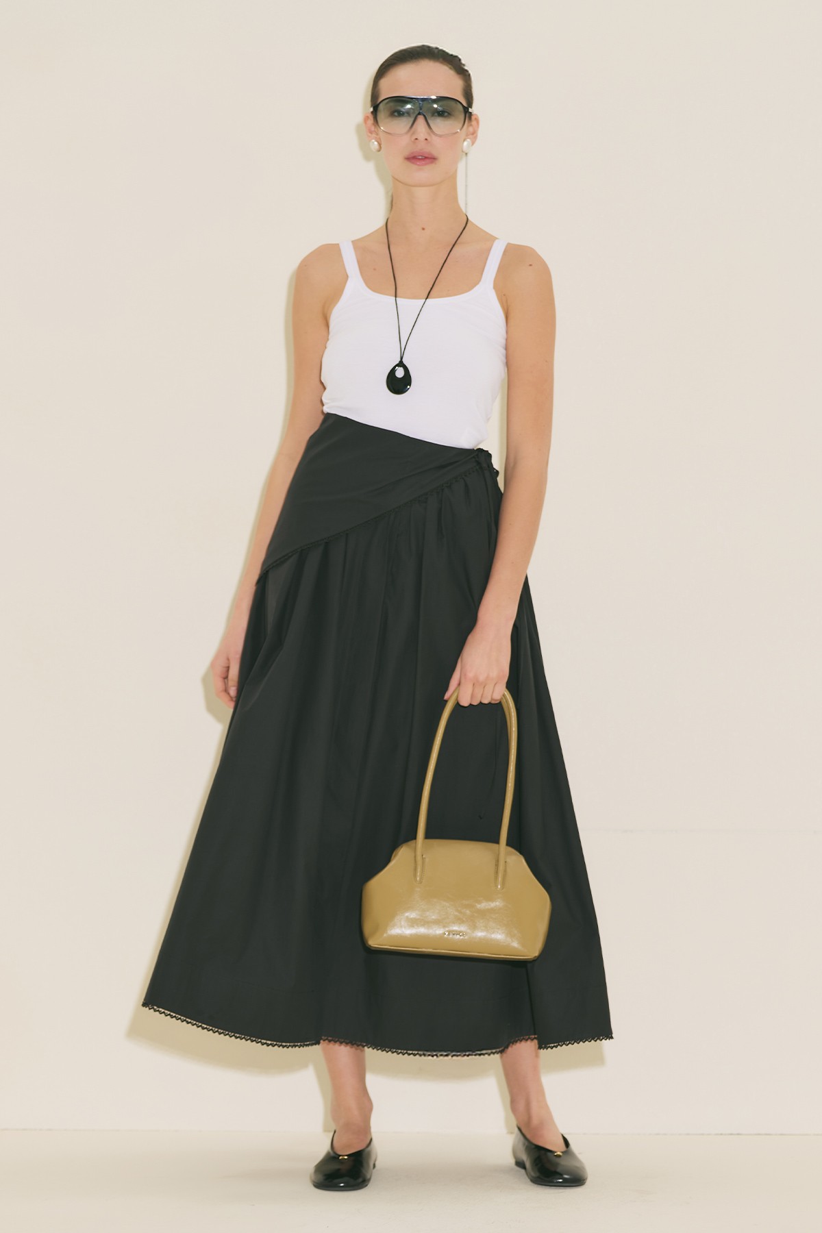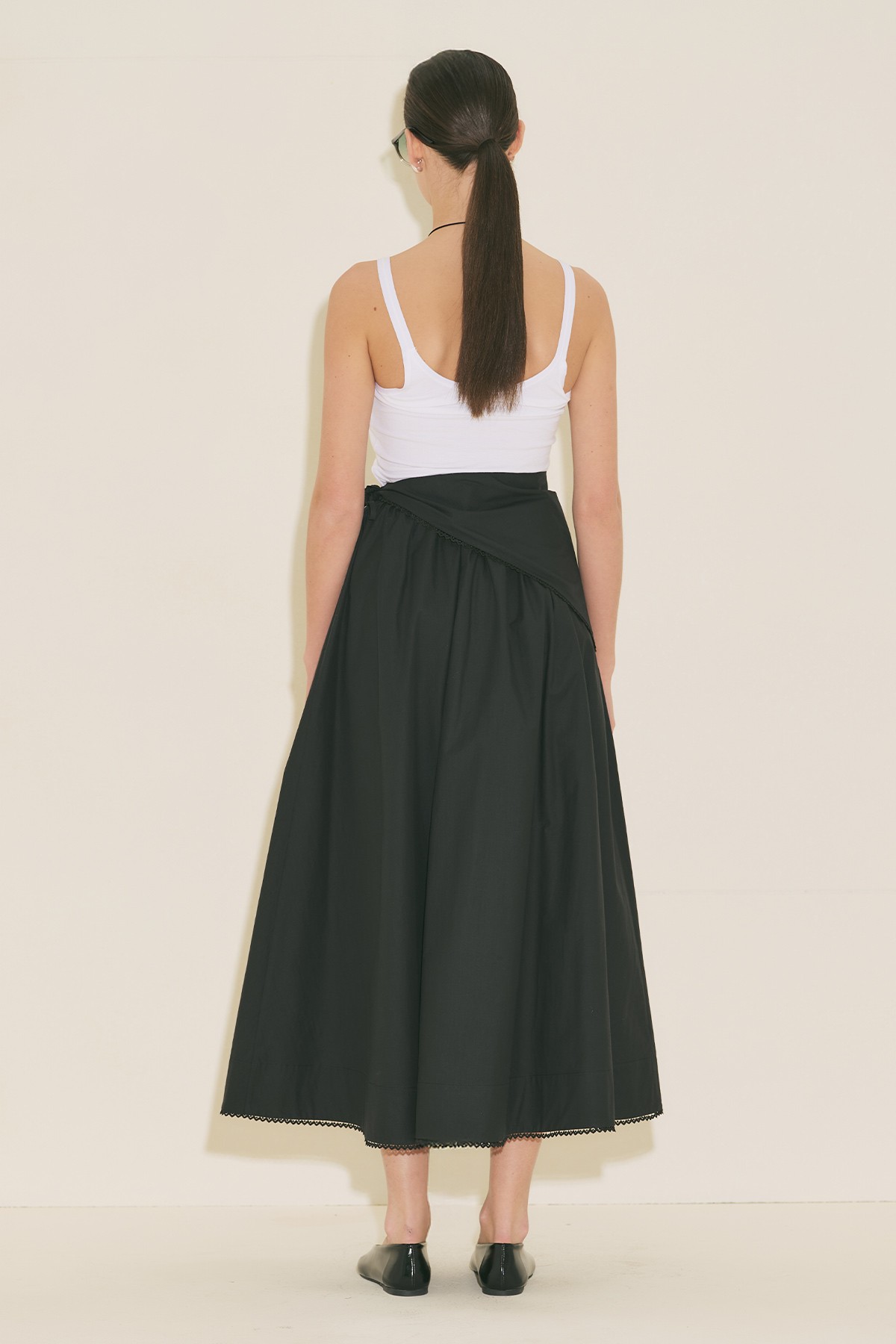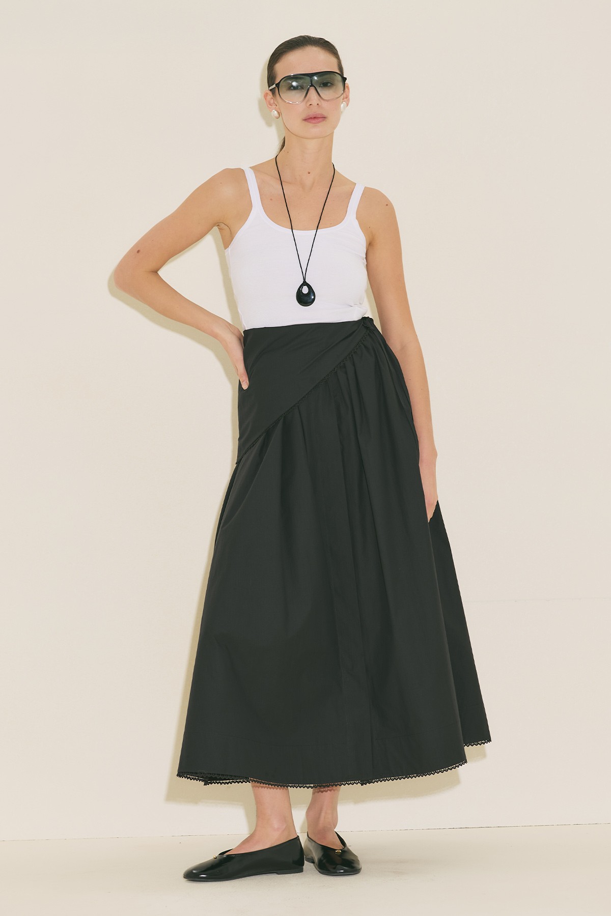 ÖNÜ DÜĞMELİ POPLİN ETEK SİYAH