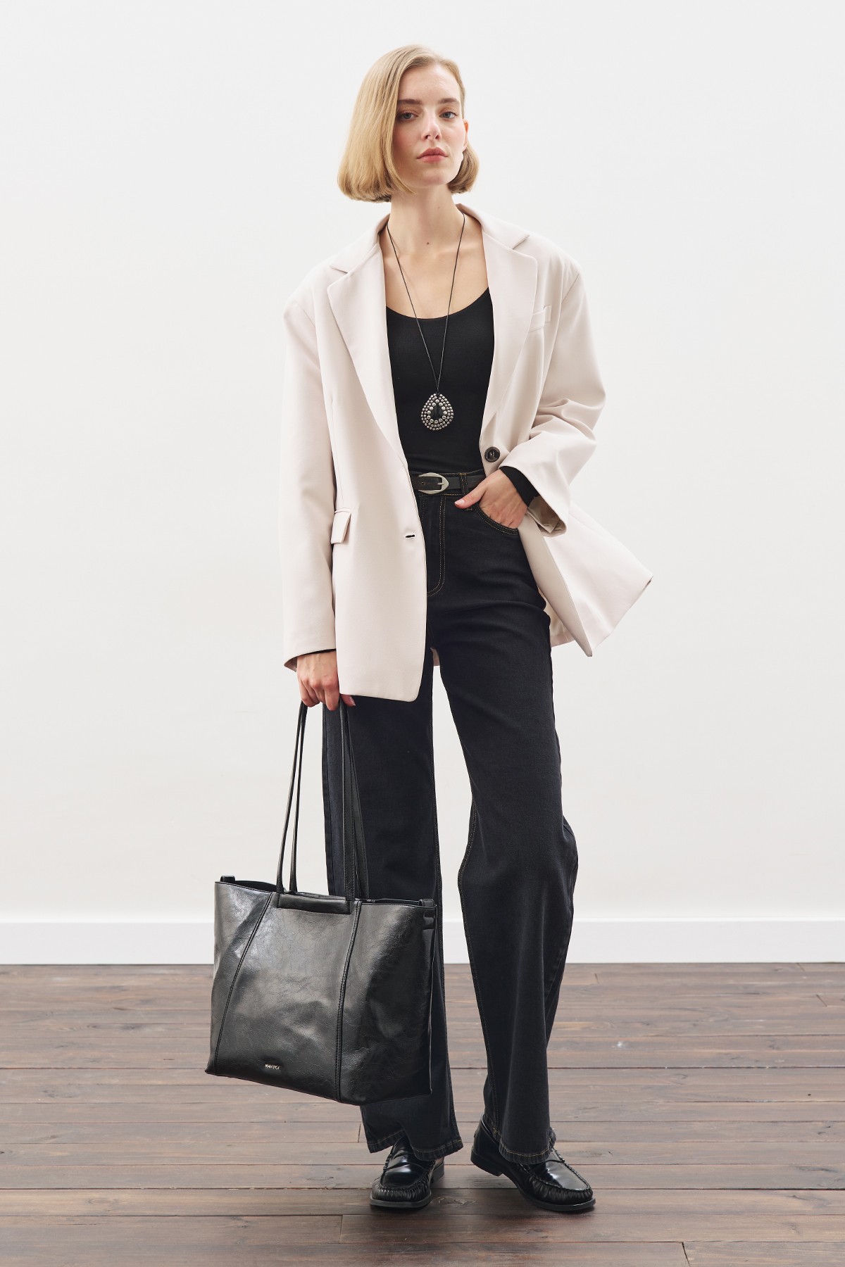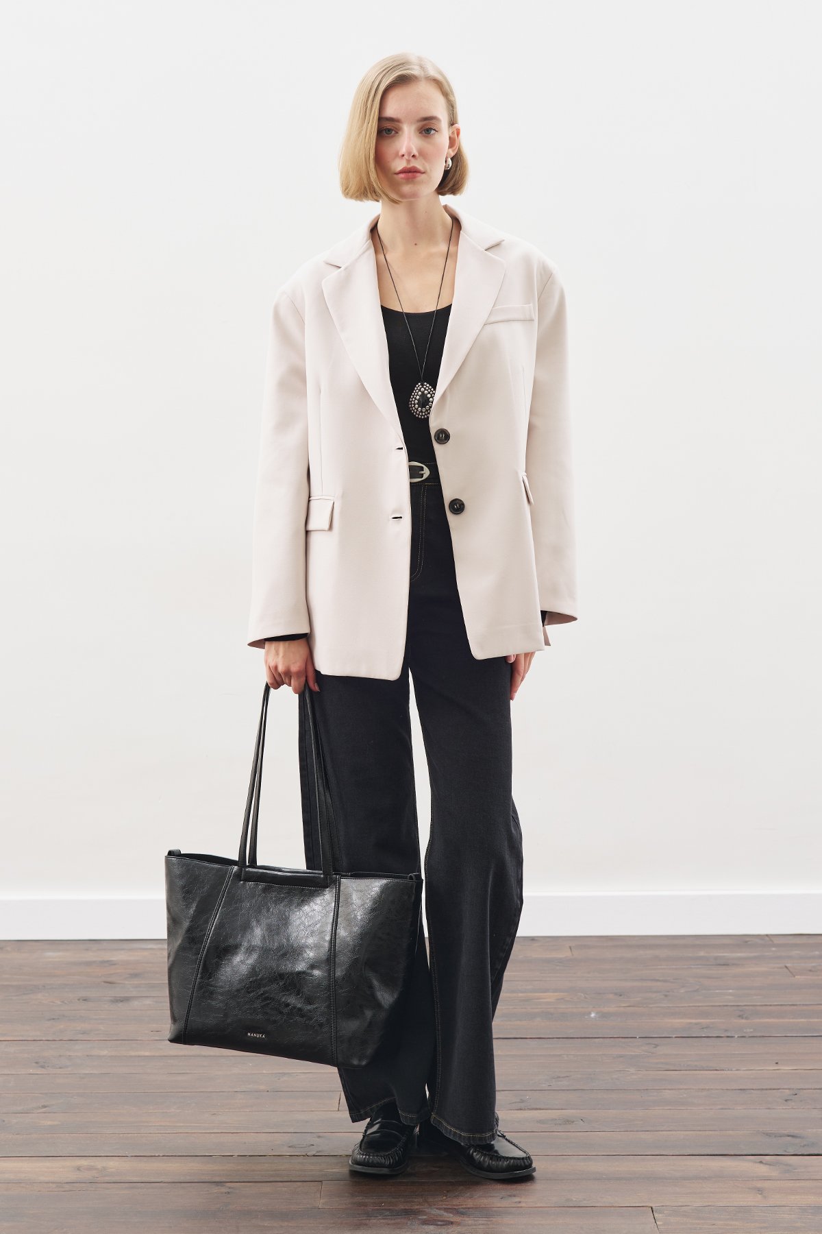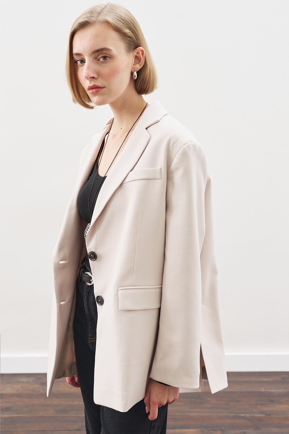 OVERSIZE CUT BLAZER JACKET BEIGE FEATURES