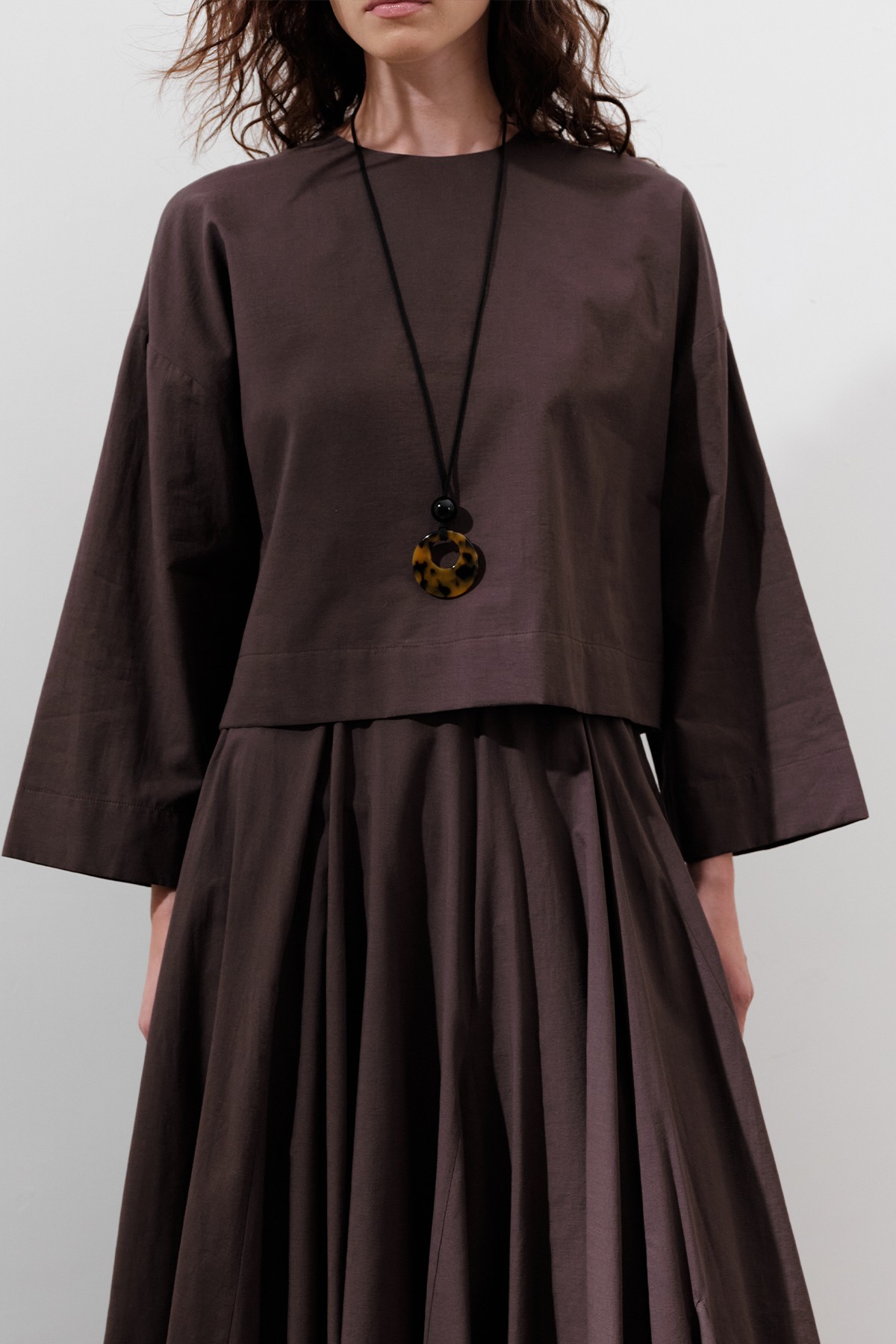 PAMUKLU CROP UZUN KOL BLUZ KAHVERENGİ