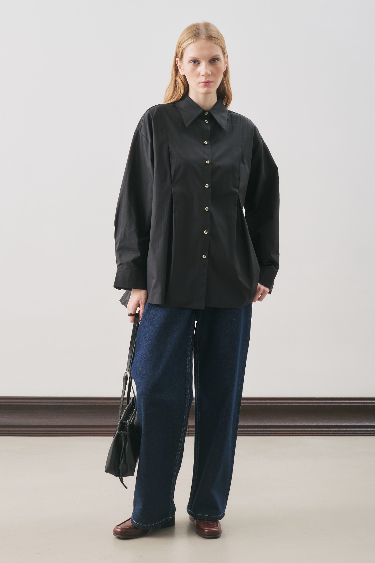 PARÇALI TASARIM GÖMLEK SİYAH