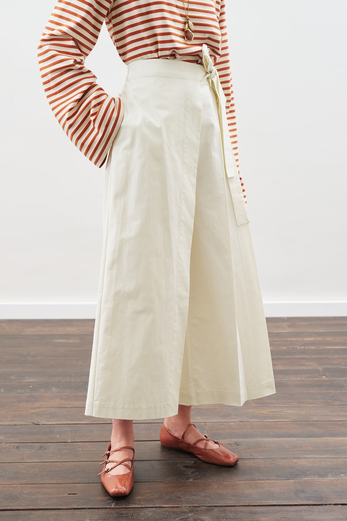 Yüksel bel,pileli,bağlamalı etek pantolon,tam boy,bağlamalı, normal kalıp.Ana Kumaş %98 Pamuk, %2 Elastan