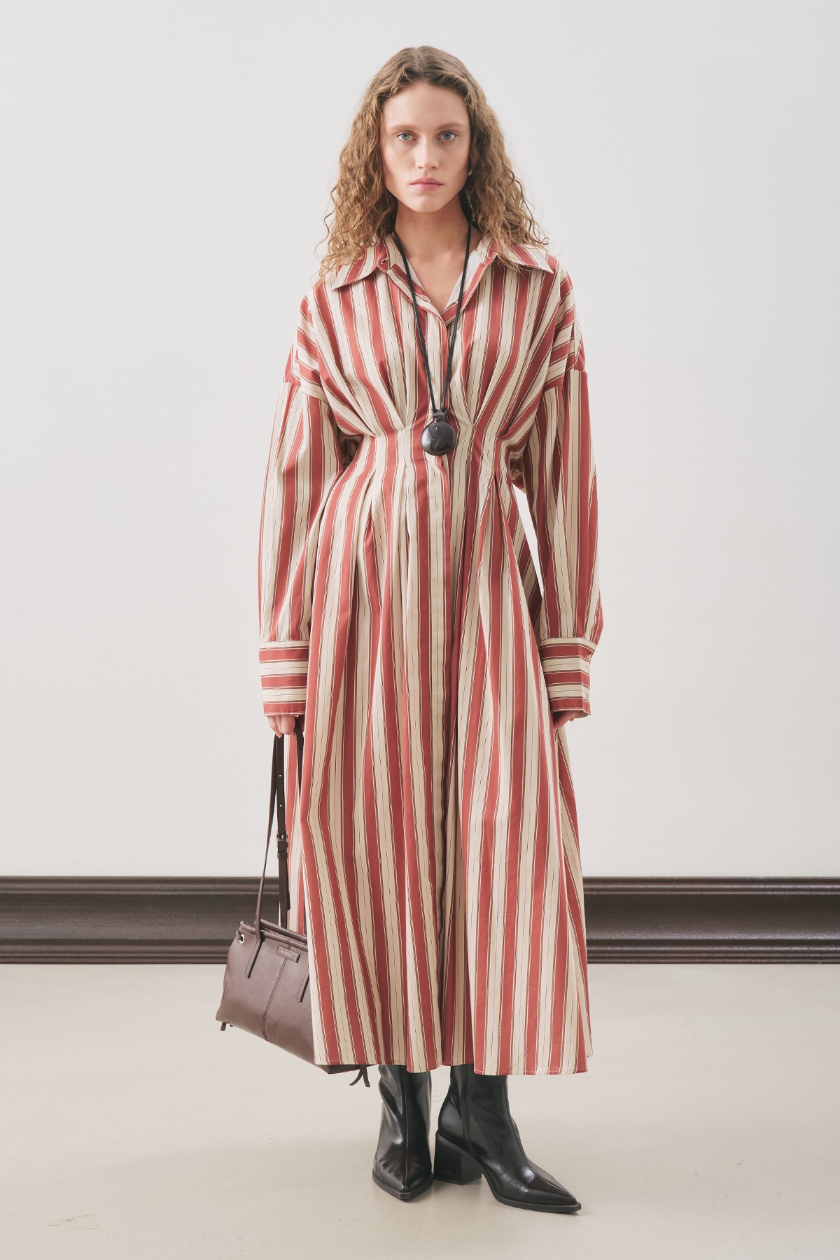 PİLE DETAYLI GÖMLEK ELBİSE KİREMİT ÇİZGİLİ ÖZELLİKLERİ