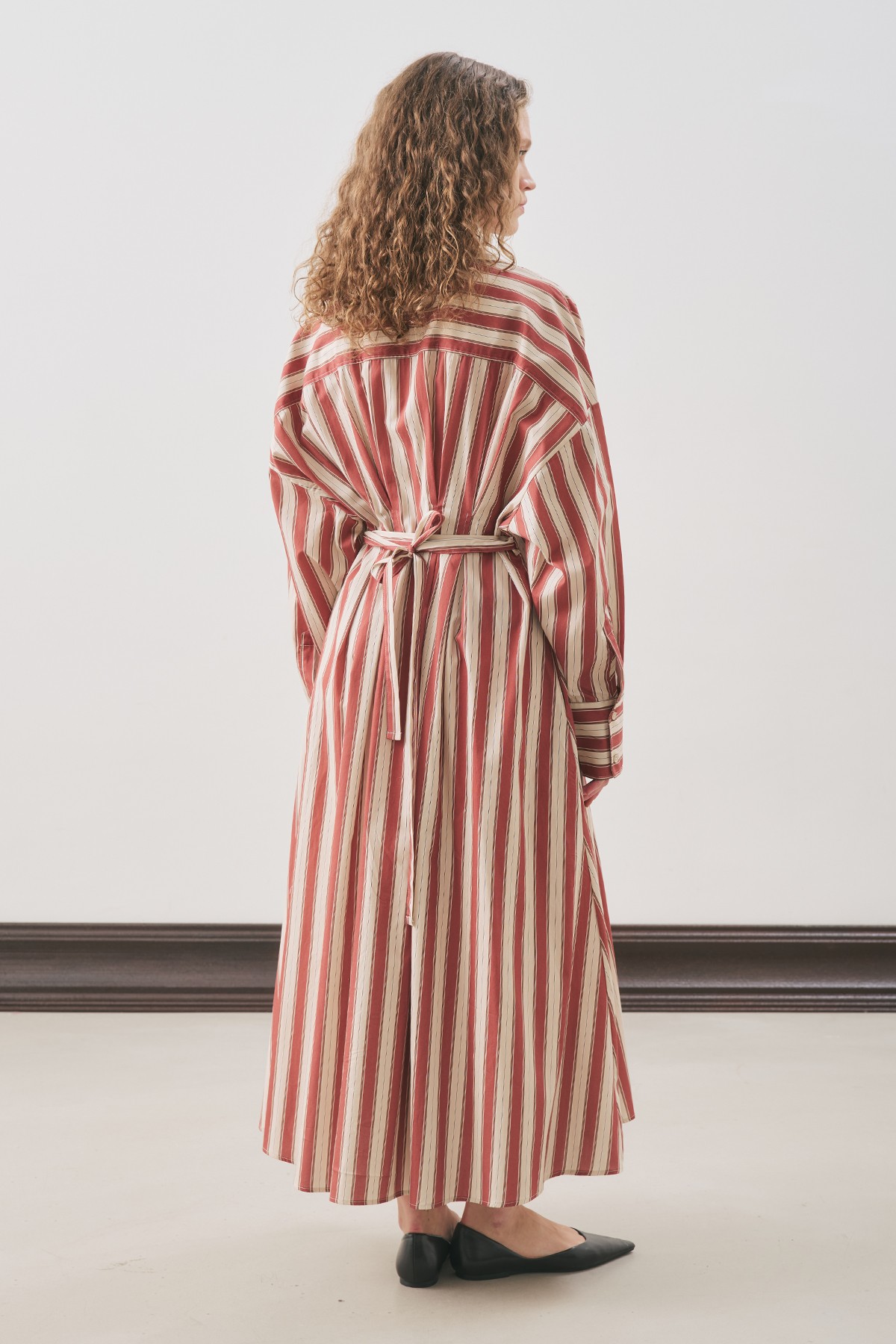 PİLE DETAYLI GÖMLEK ELBİSE KİREMİT ÇİZGİLİ