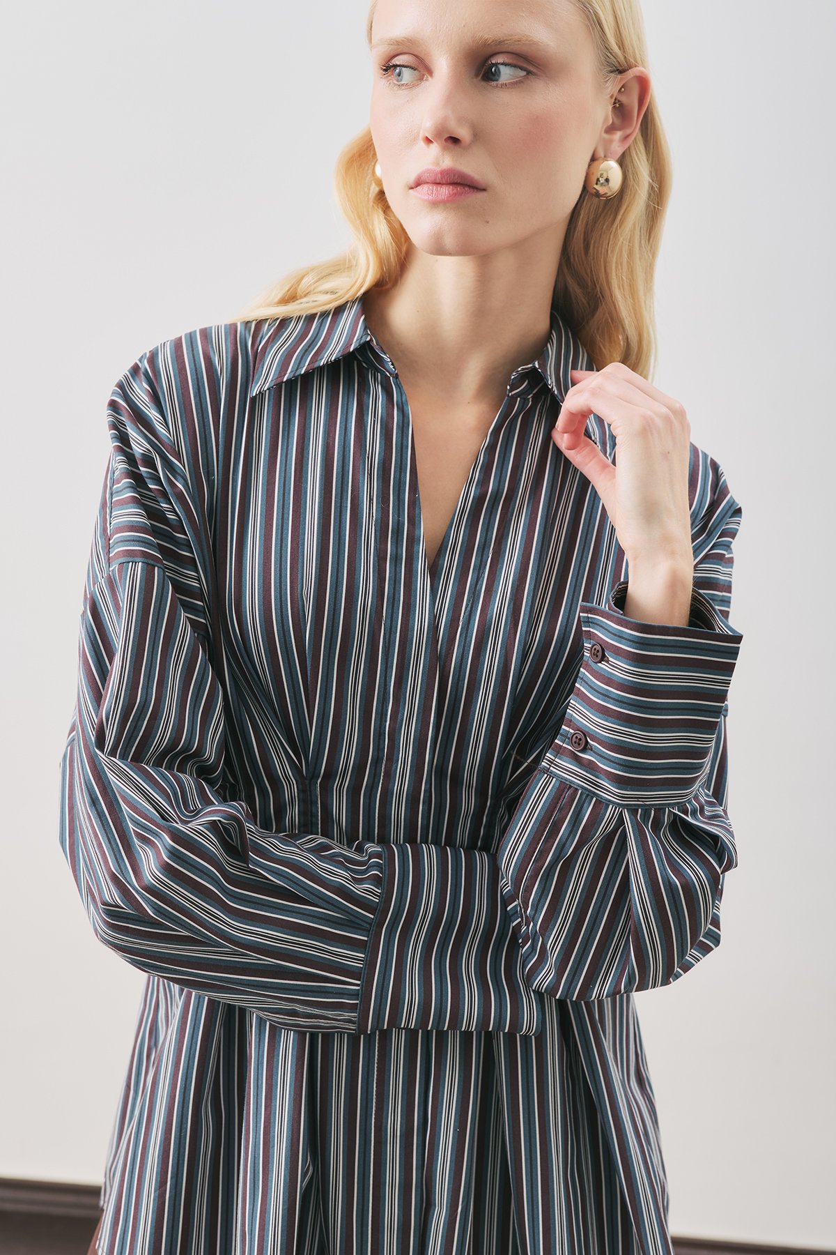 PİLE DETAYLI GÖMLEK KAHVE ÇİZGİLİ ÖZELLİKLERİ