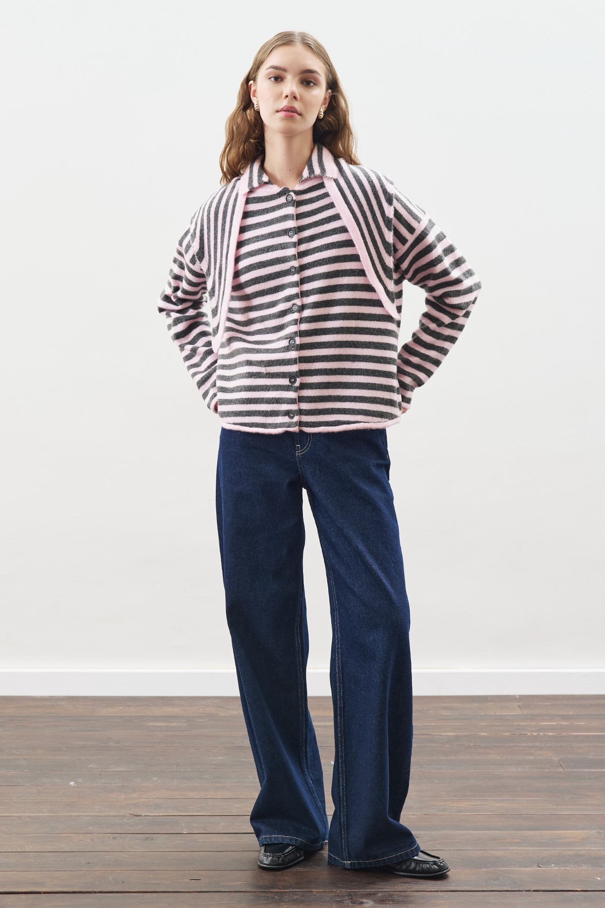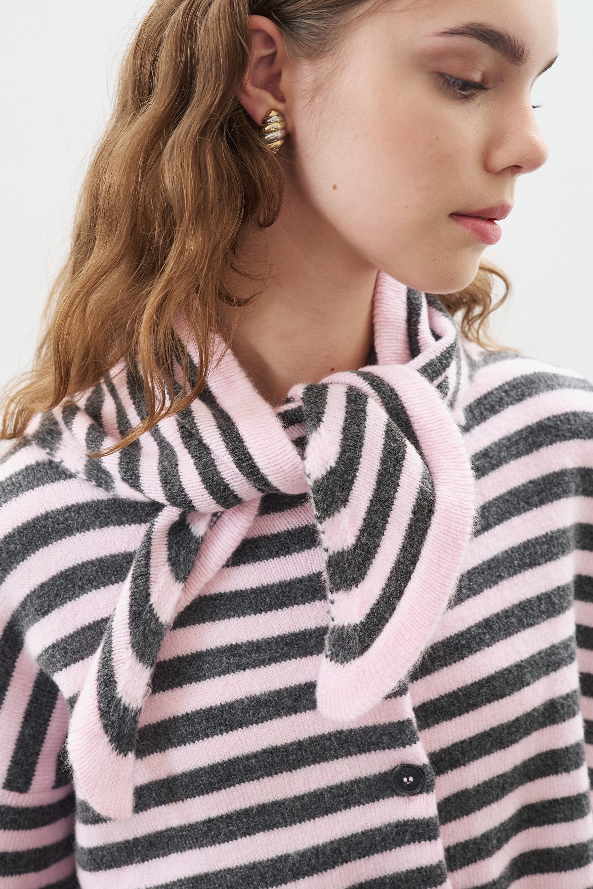 PINK STRIPED CARDIGAN WITH SCARF DETAIL