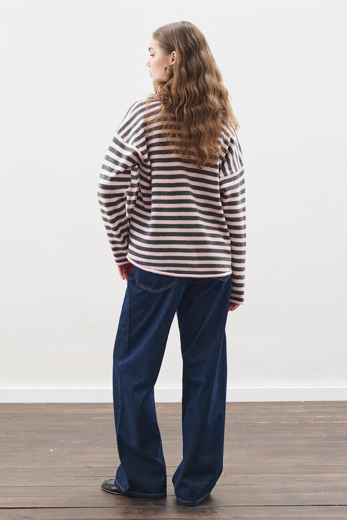Regular fit, crew neck, long sleeves, striped pattern, scarf detail, crop length, button closure.Main Fabric: 74% Acrylic, 18% Polyester, 8% Polyamide