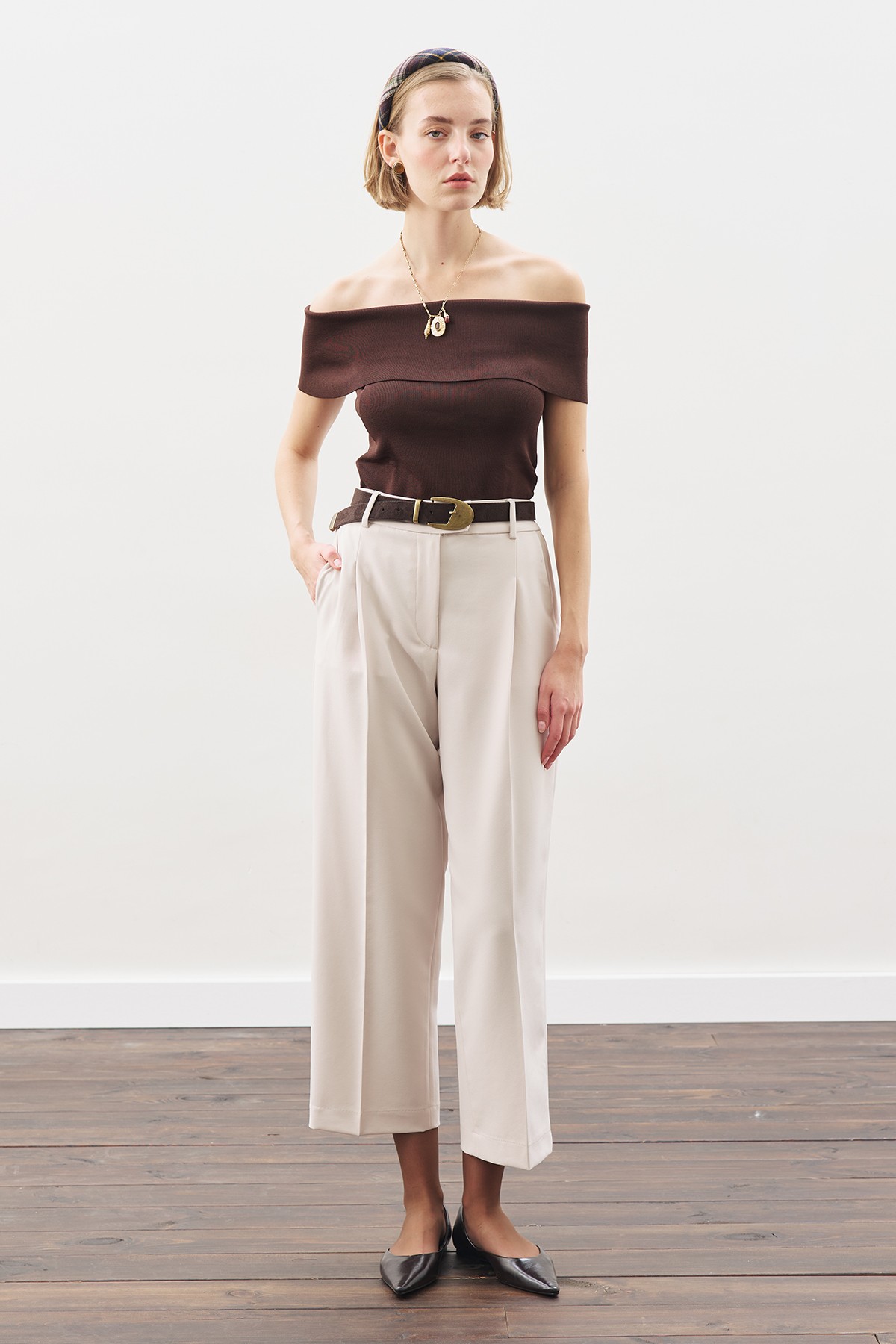 PLEATED DETAIL STRAIGHT CUT PANTS BEIGE ürününde stoğu olan mağazalarımız.