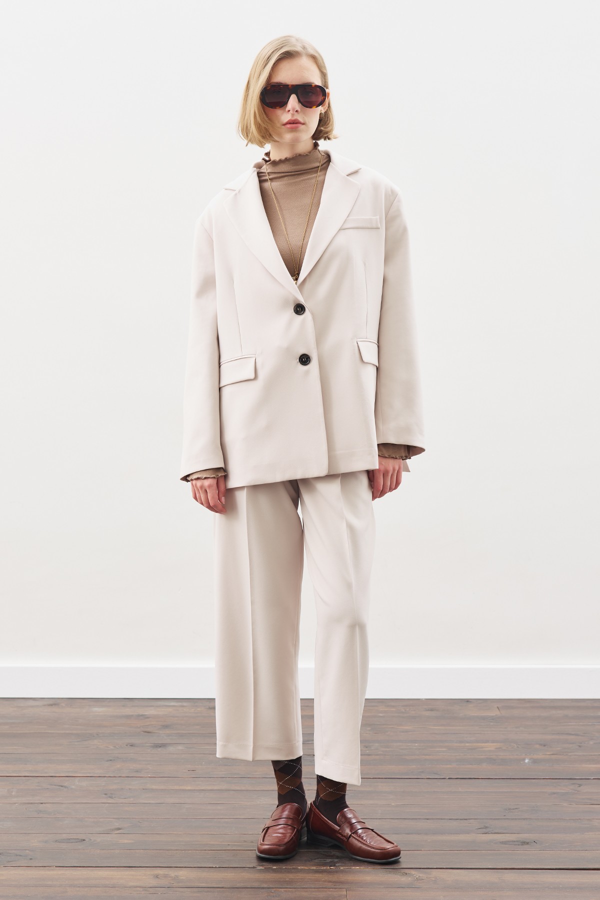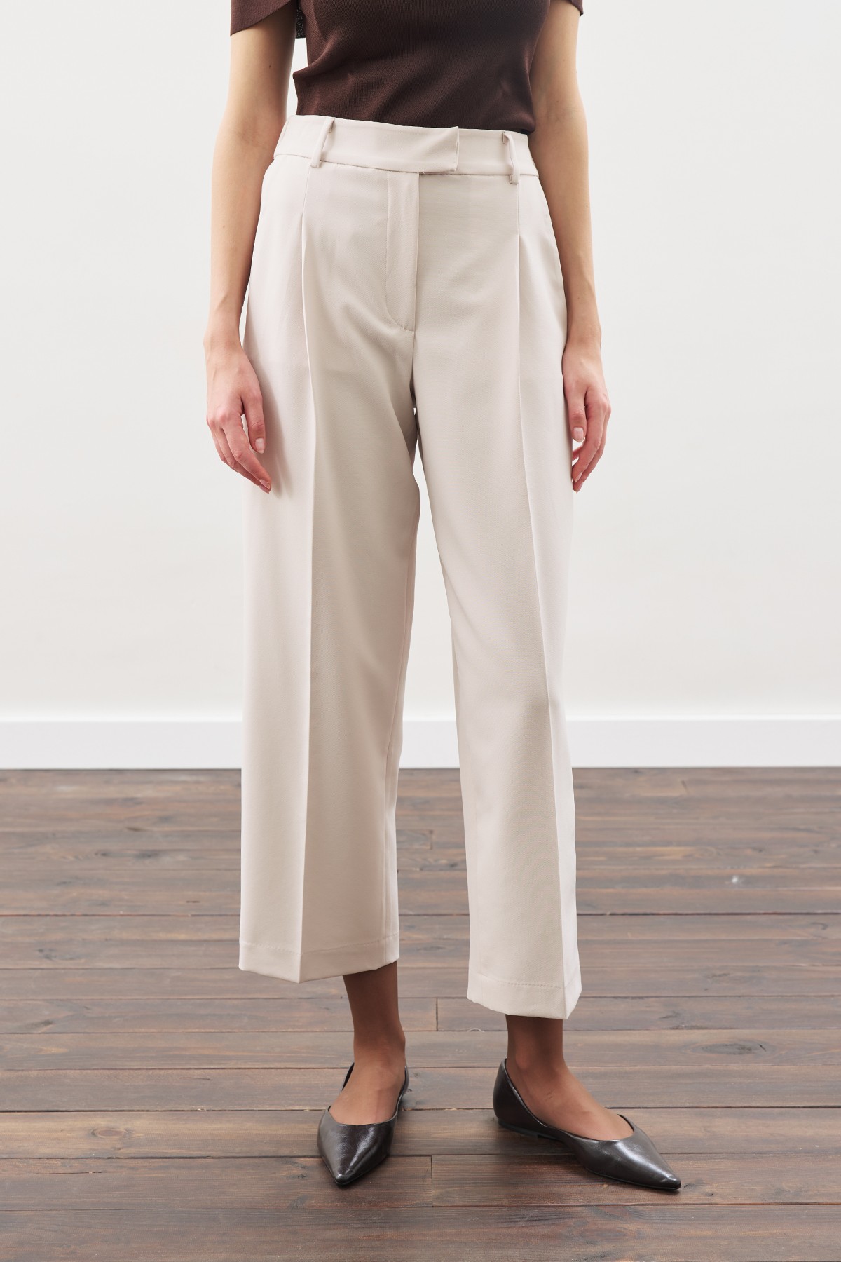 PLEATED DETAIL STRAIGHT CUT PANTS BEIGE